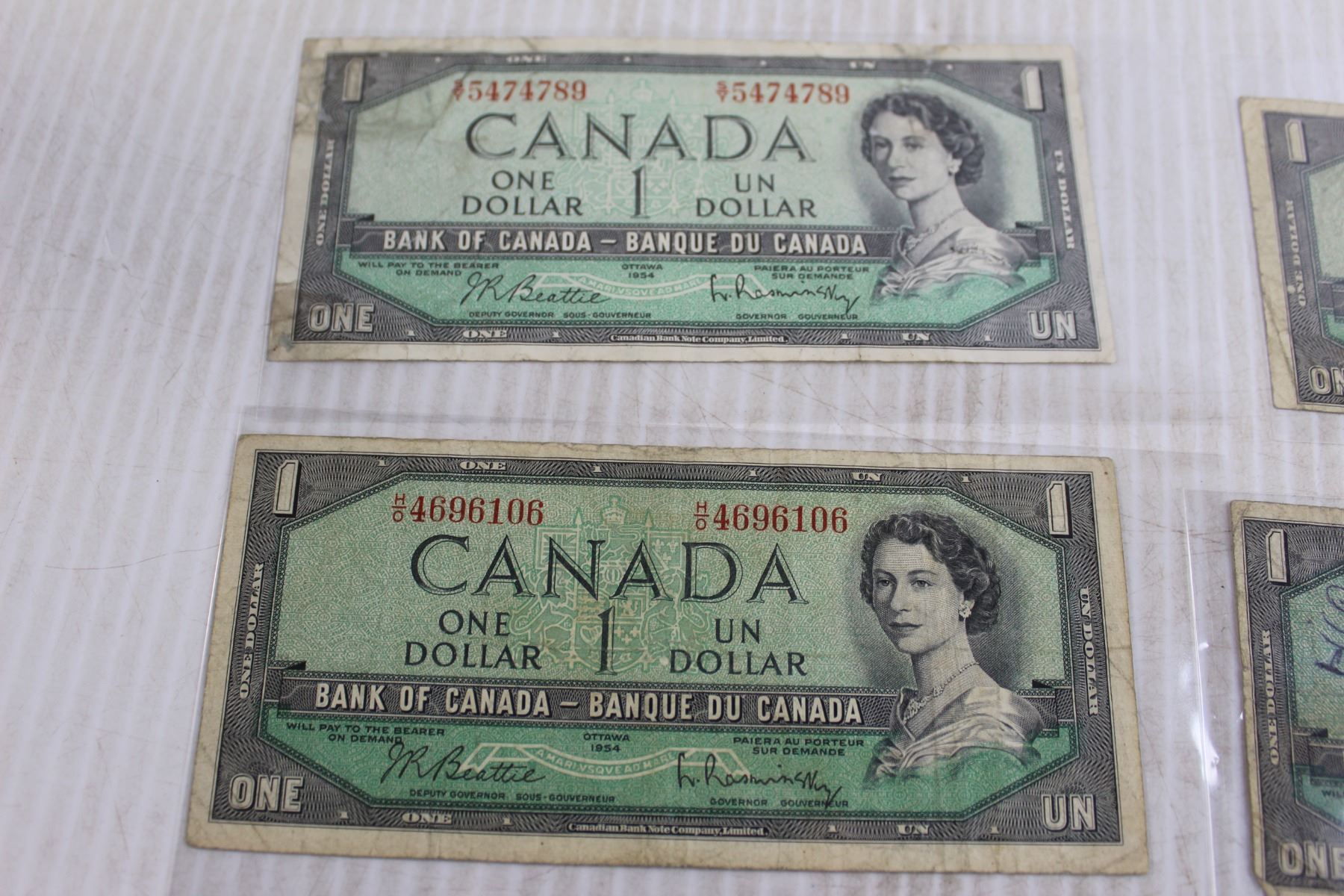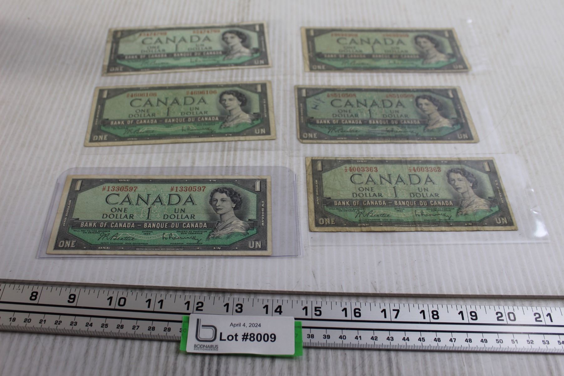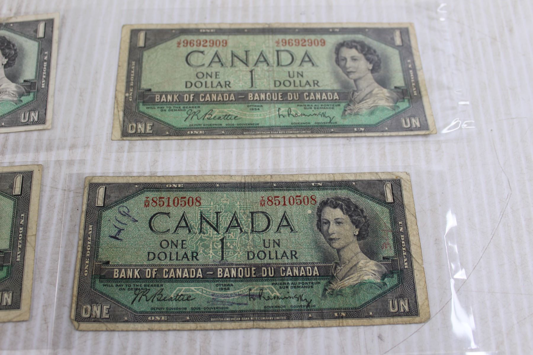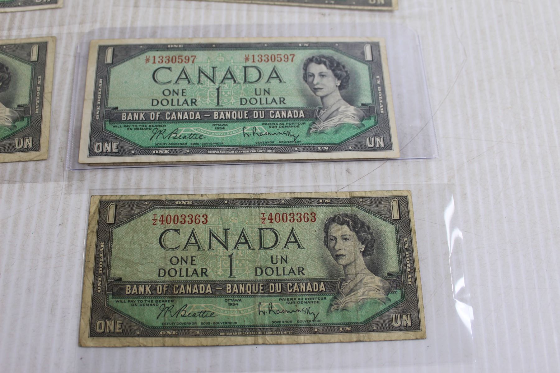 (6) 1954 Canadian $1 Bills