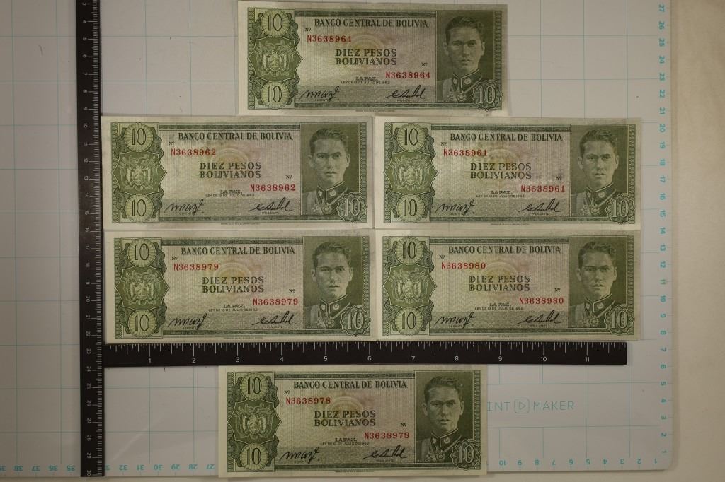 DOWN CENTER, 1 SET OF 2 WITH CONSECUTIVE SERIAL NUMBERS AND 1 SET OF 3 WITH CONSECUTIVE SERIAL NUMBERS, SOME INK SMEARS ON THE BACKS OF THEM