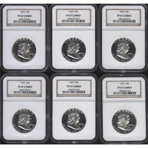 <B>(6)1963 50C PR67 Cameo NGC.</B></I><BR><BR><b>Shipping:</b> Coin/Currency (<a target="_blank" href="http://www.heritageauctions.com/common/shipping.php">view shipping information</a>) <BR><BR><B>Important notice