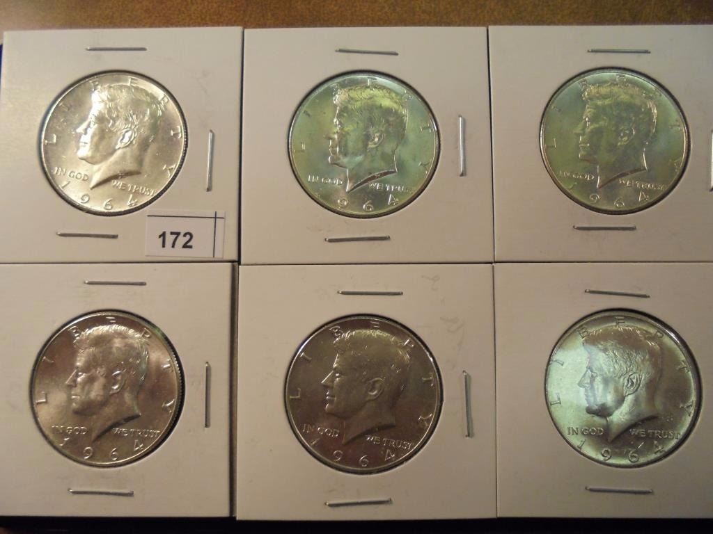 6-1964 90% SILVER KENNEDY HALF DOLLARS UNC