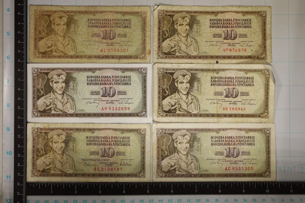 6-1968-YUGOSLAVIA 10 DINARA BILLS. 1 IS CRISP UNC