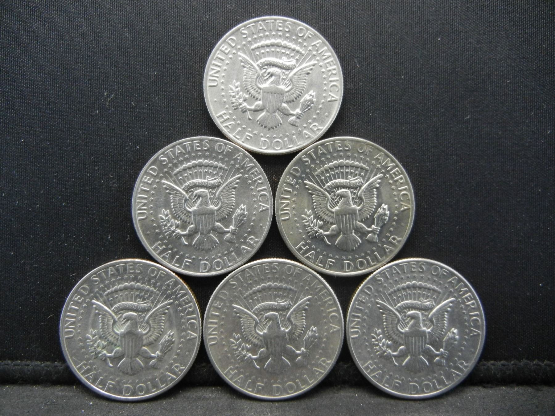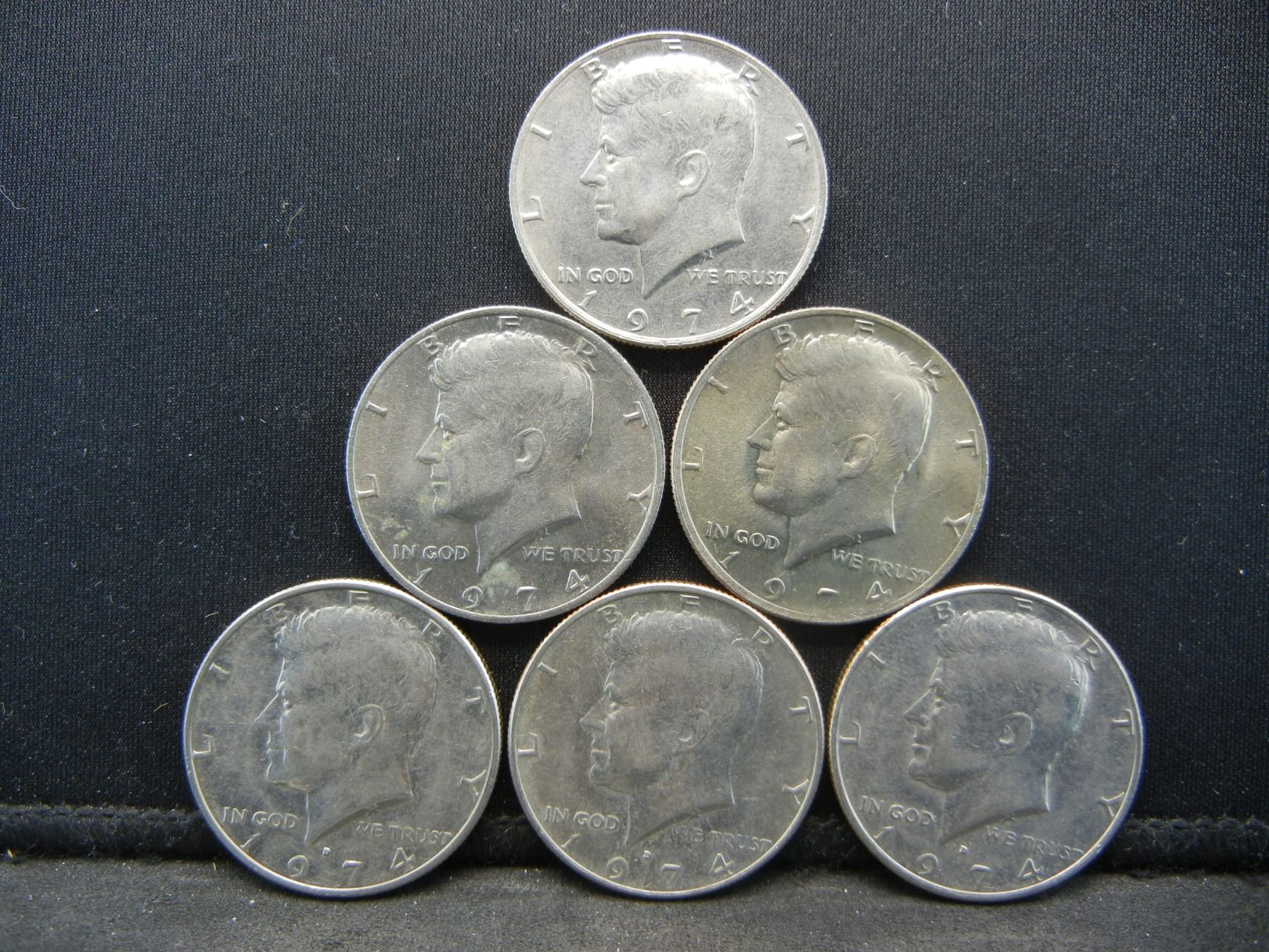 (6) 1974 Kennedy Half Dollars, Some Mint Marks