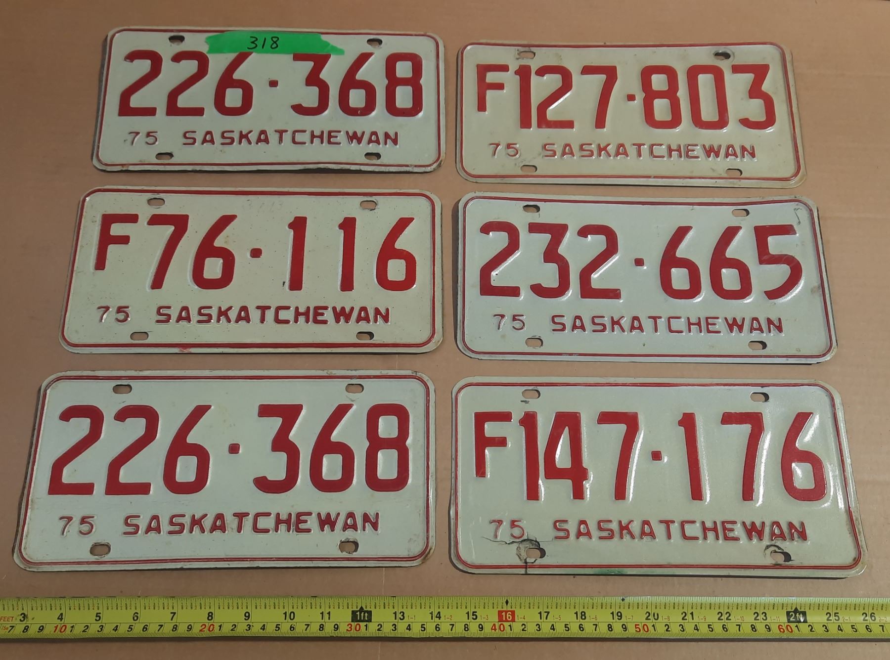 (6) 1975 Saskatchewan License Plates. (One Pair)
