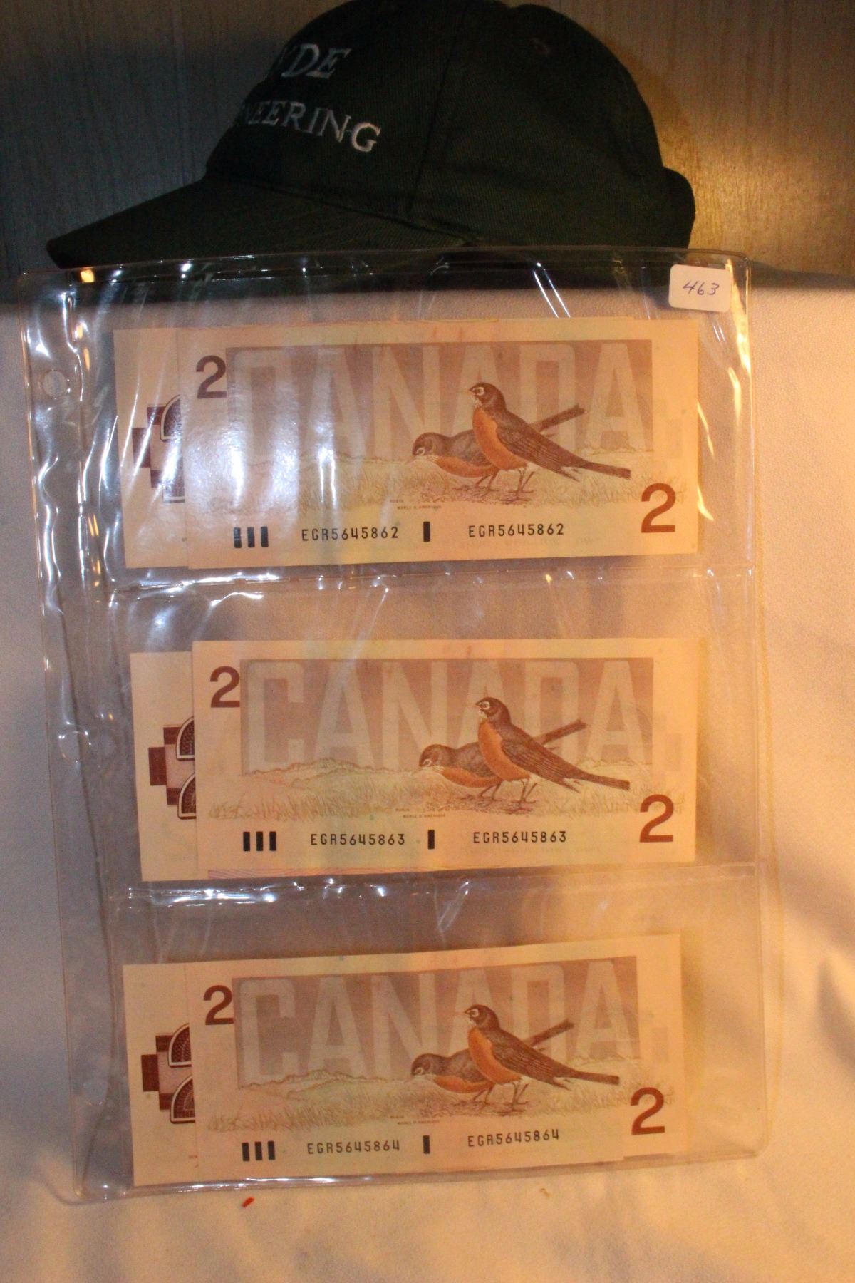 6 - 1986 Cdn. Two Dollar Bill - 2 Set of 3 Sequenced