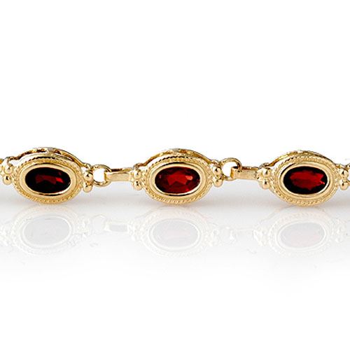 REF-36M2H -13852 ---- 6.20 CTW Garnet Bracelet 10K Yellow Gold ---- Luxury Designer Brand Bracelet Appraised at $2,200 Certificate Number US13852 10k Yellow gold, Bracelet Size is 7 Inches, Bracelet measuring approx. 7" x 3/16", weighing in total approx. 6.5 grams. Made in the USA and is stamped 10k, Main stone 6.2 carat total weight containing 11 pieces of Saturated purplish Red color with AAA quality Oval shape cut Garnet , Stone #2 carat total weight containing pieces of color with quality shape cut