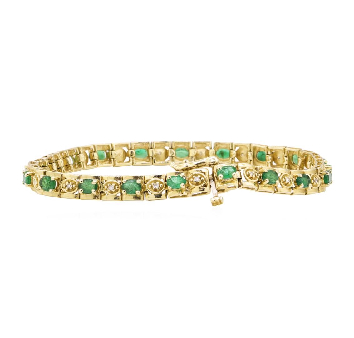 One bracelet measuring seven inches in length featuring: 14KT yellow gold weighing 10.1 grams containing emeralds weighing 6.00ctw and diamonds weighing 0.20ctw.