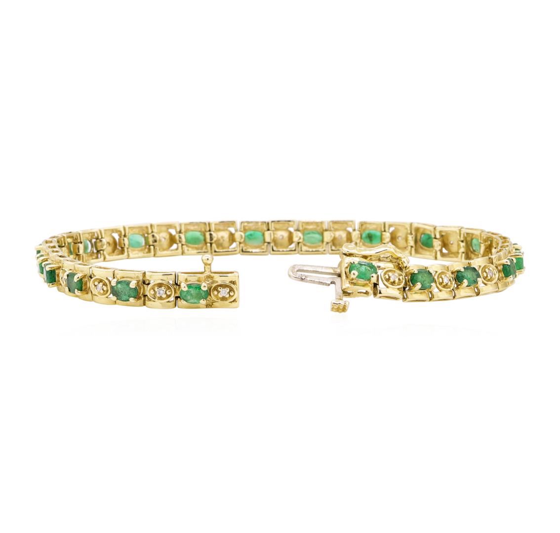 One bracelet measuring seven inches in length featuring: 14KT yellow gold weighing 10.1 grams containing emeralds weighing 6.00ctw and diamonds weighing 0.20ctw.