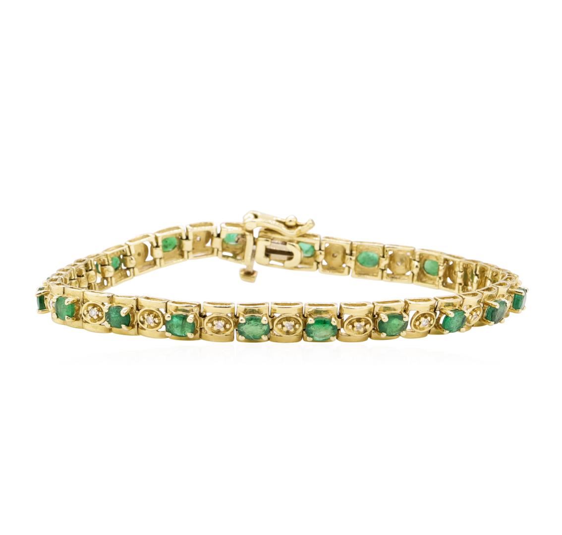 One bracelet measuring seven inches in length featuring: 14KT yellow gold weighing 10.1 grams containing emeralds weighing 6.00ctw and diamonds weighing 0.20ctw.