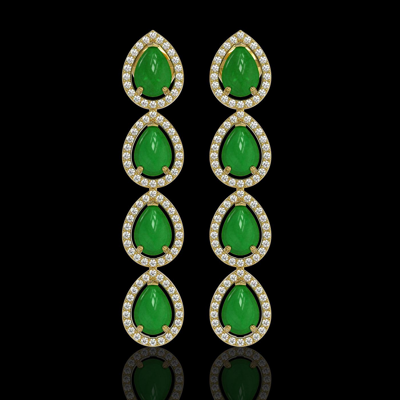 REF-158W2H - SKU: 46056 ---- 6.20 ctw Jade & Diamond Micro Pave Halo Earrings 10k Yellow Gold