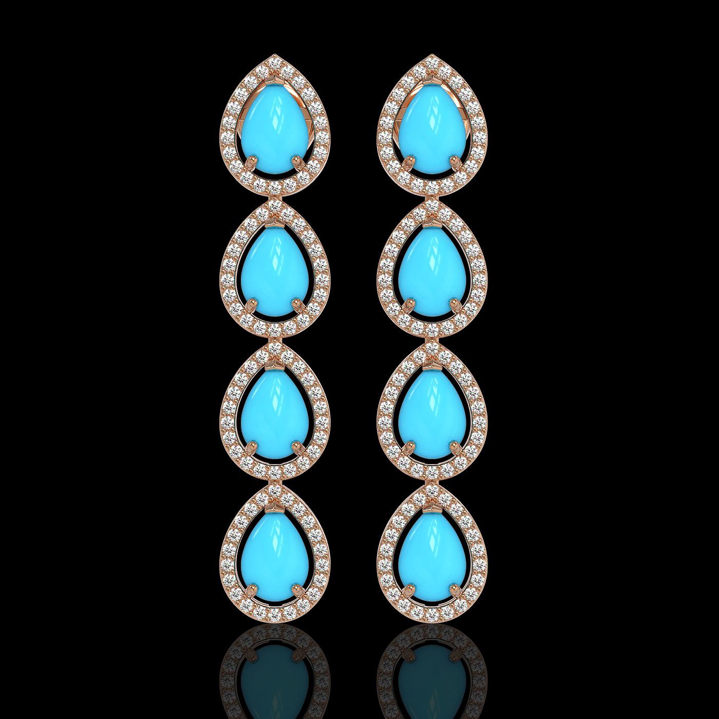 REF-158G2W - SKU: 46052 ---- 6.20 ctw Turquoise & Diamond Micro Pave Halo Earrings 10k Rose Gold