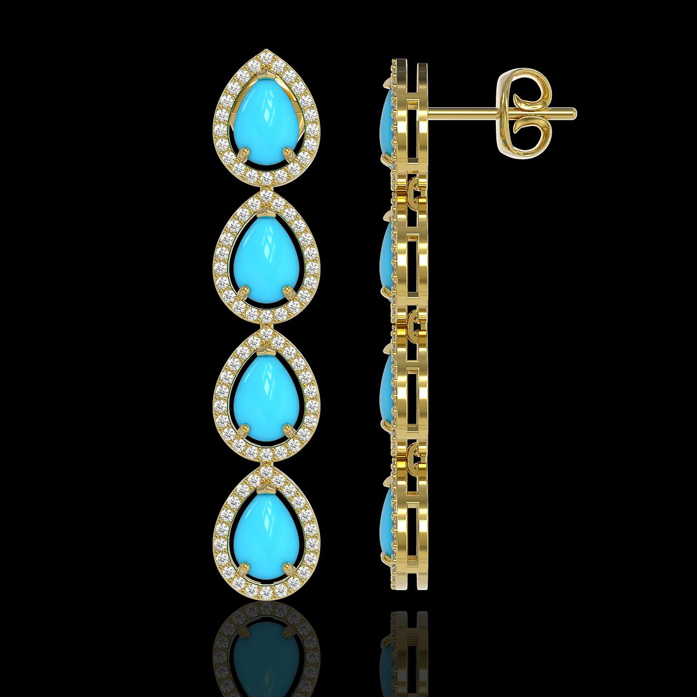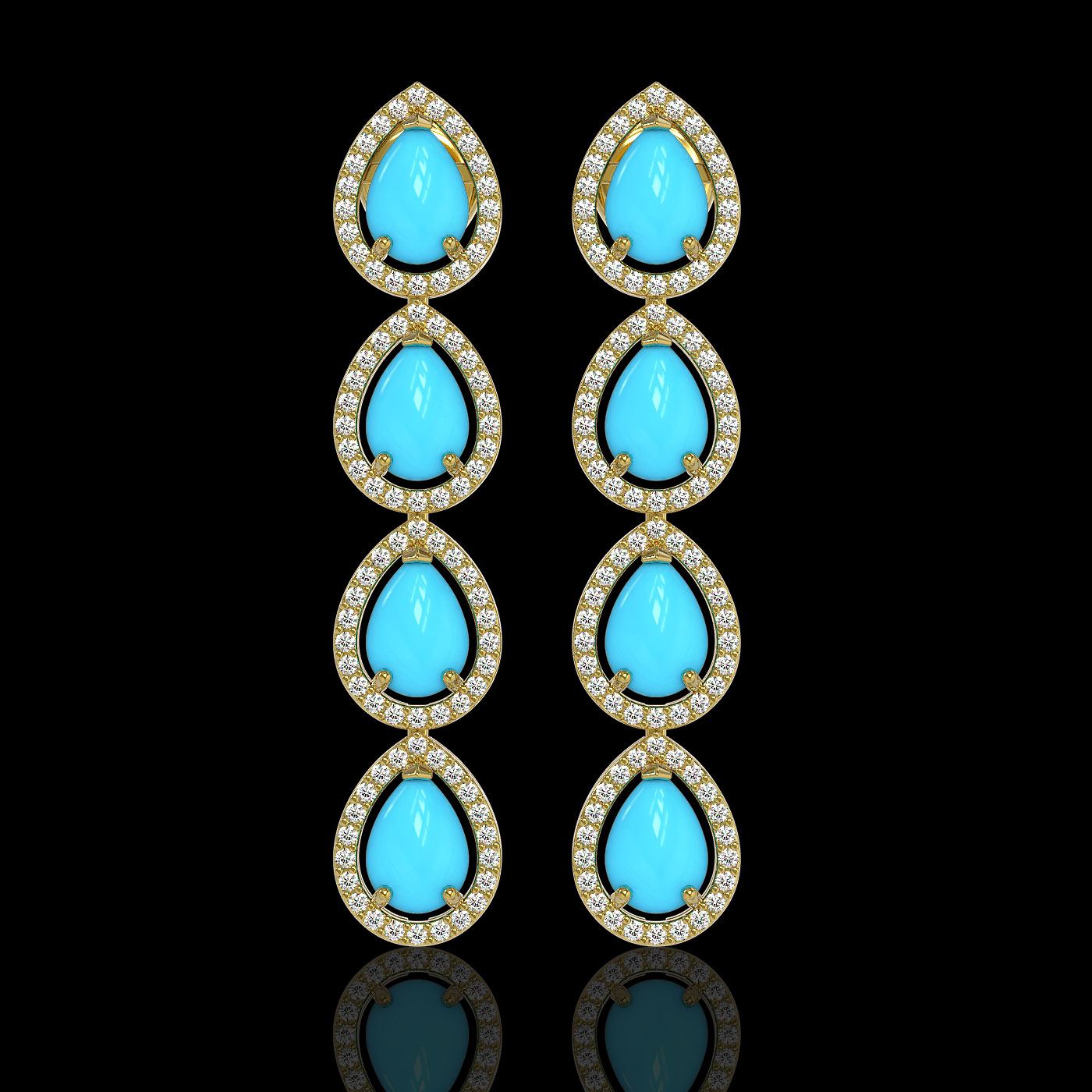 REF-158H2R - SKU: 46053 ---- 6.20 ctw Turquoise & Diamond Micro Pave Halo Earrings 10k Yellow Gold