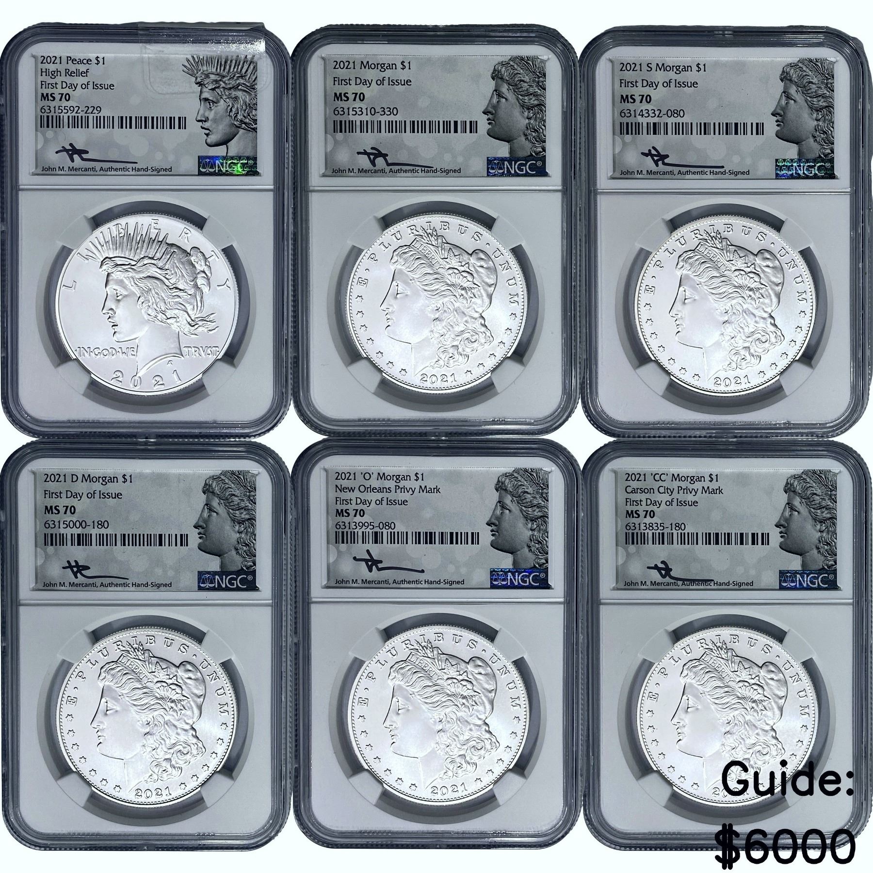 [6]2021 Silver Morgan/Peace Dollar Set NGC MS70