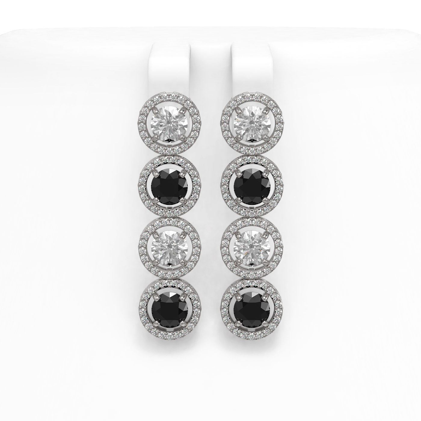 REF-635W6F -42701 ---- 6.22 CTW Black & White Diamond Designer Earrings 18K White Gold ---- Luxury Designer Brand Earring Appraised at $27,950 Certificate Number US42701 18K White gold, Earring Size is 1 1/2 Inches Long, Earring measuring approx. 9 x 36 mm Long, weighing in total approx. 9 grams. Made in the USA and is stamped 18K, Main stone 2.4 carat total weight containing 4 pieces of I-J color with VS/SI quality Round shape cut Diamond , Stone #2 2.48 carat total weight containing 4 pieces of Black color with VS/SI quality Round shape cut Diamond , Stone #3 1.34 carat total weight containing 168 pieces of G-H color with VS/SI quality Round shape cut Diamnd