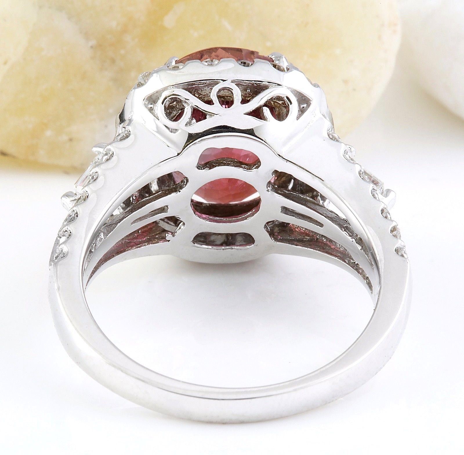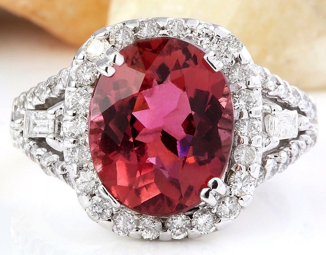6.22 CTW Natural Tourmaline 14K Solid White Gold Diamond Ring