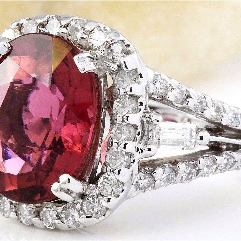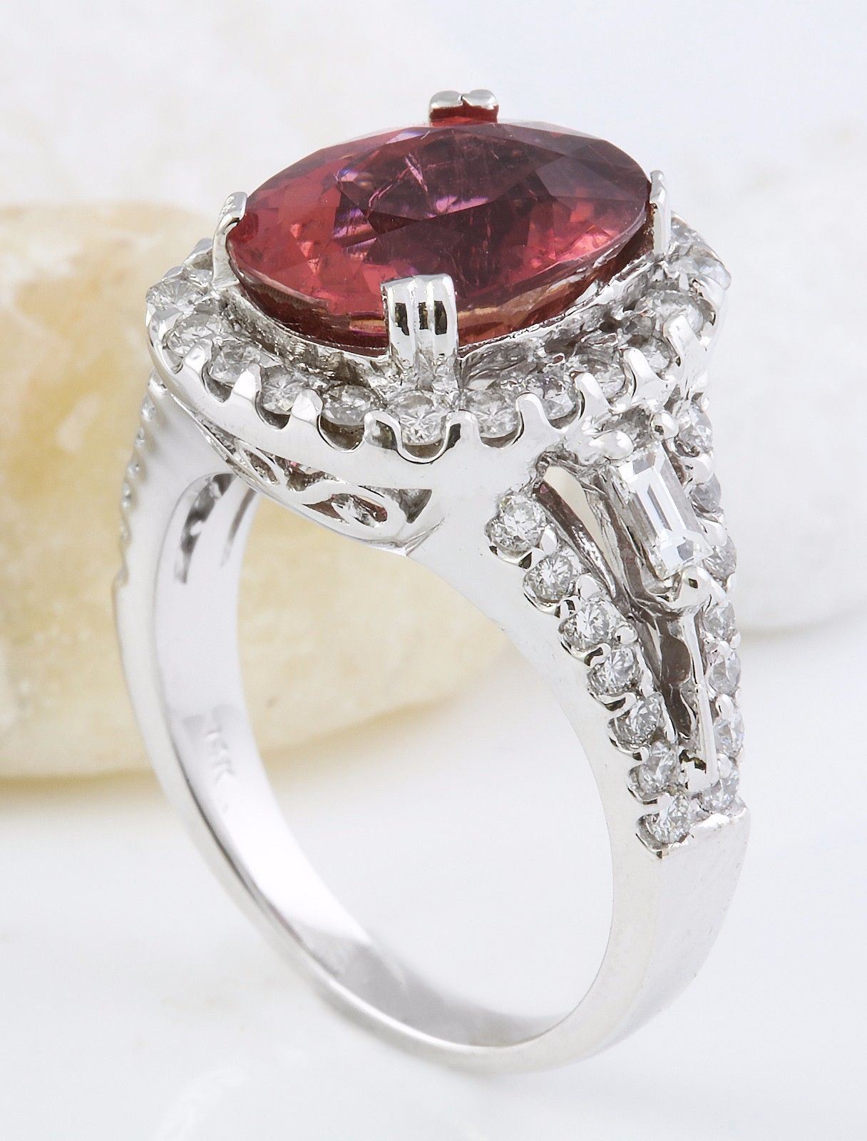 6.22 Carat Natural Tourmaline 14K Solid White Gold Diamond Ring