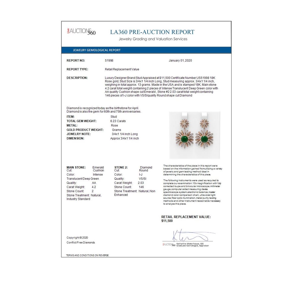 REF-261R5K - SKU: 51998 ---- 6.23 ctw Emerald & Diamond Earrings 18K Rose Gold