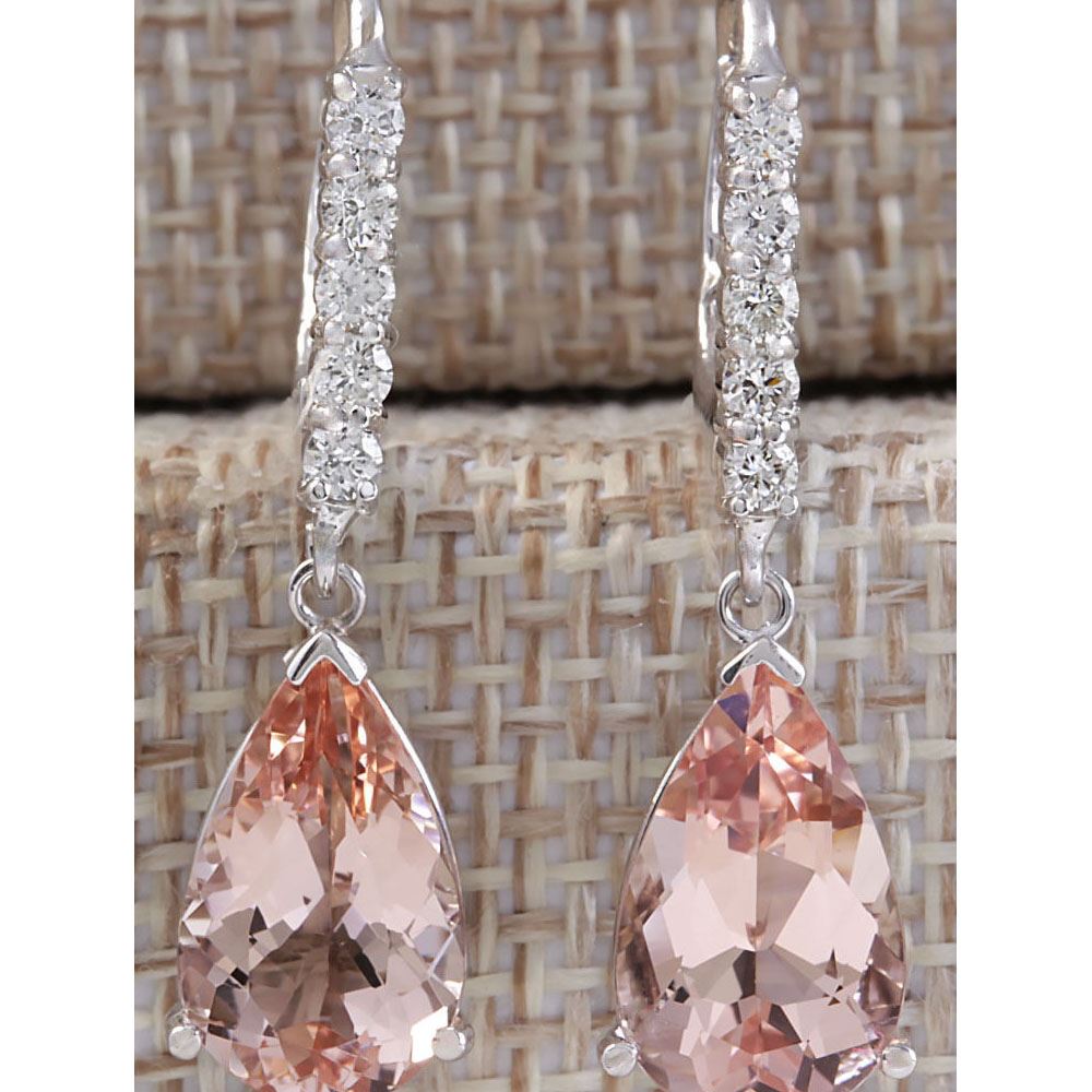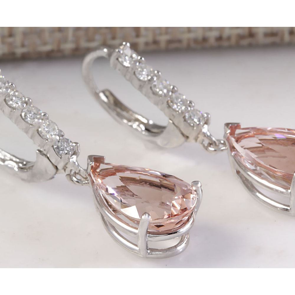6.25 CTW Natural Morganite And Diamond Earrings 18K Solid White Gold