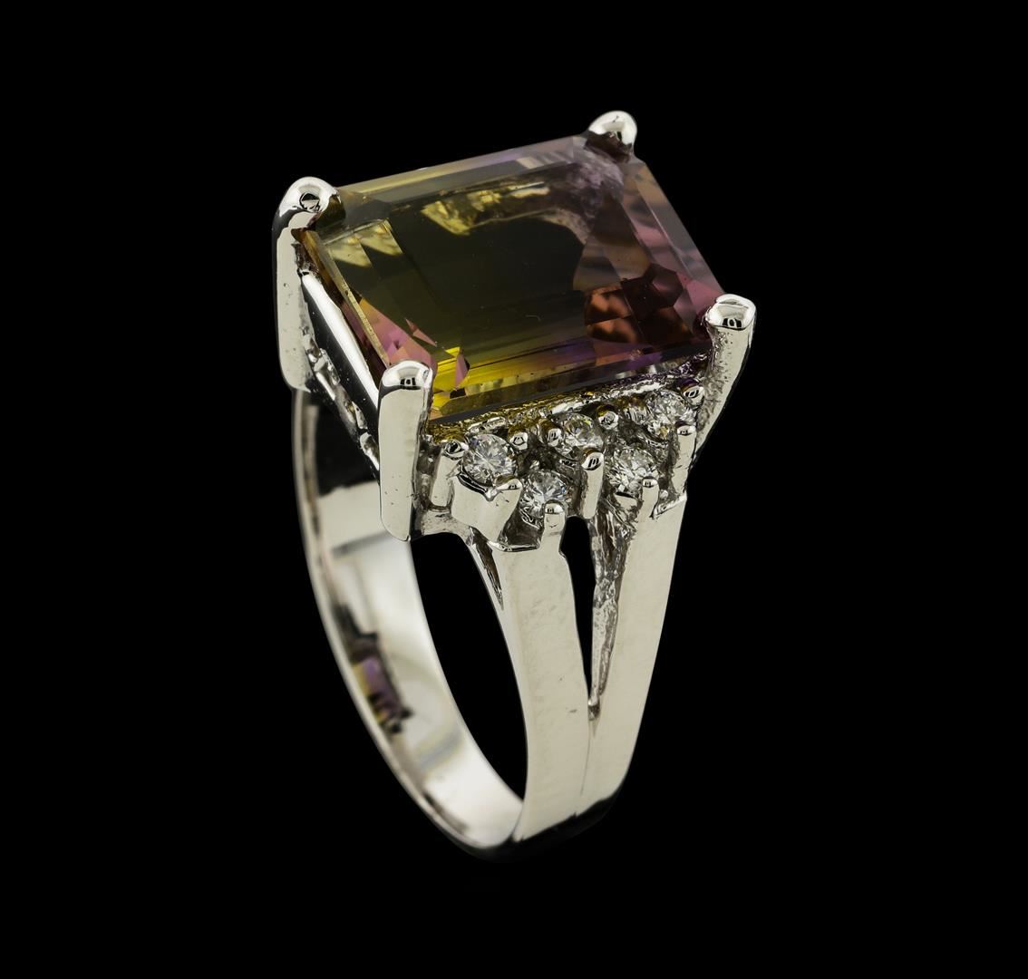 One ring : 14KT white gold weighing 6.46gm containing ametrine with a total weight of 6.16ct and diamonds weighing 0.27ctw.