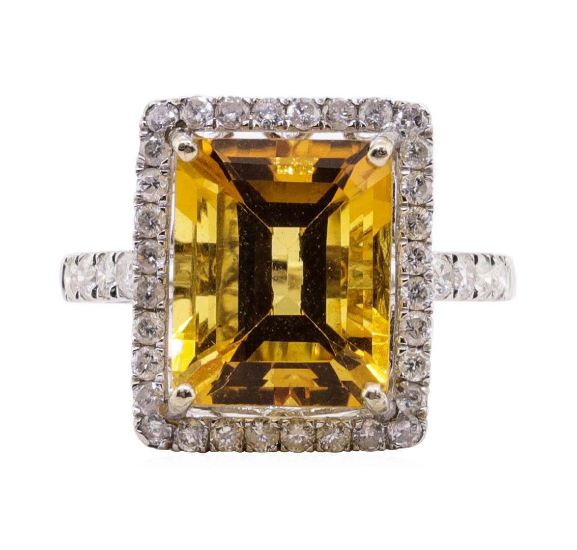 One 6.25ct Citrine and Diamond Ring - 14KT White Gold. IAS certified. See Appraisal for more details.