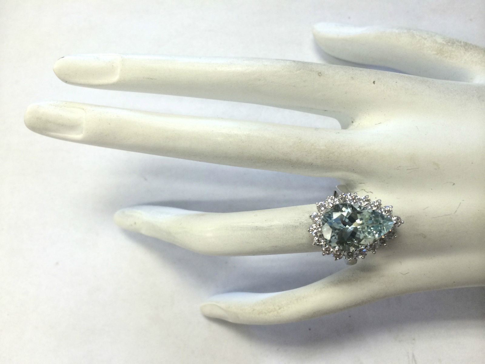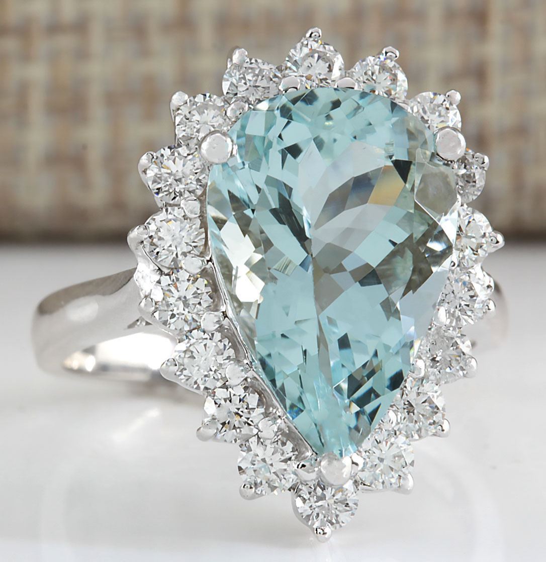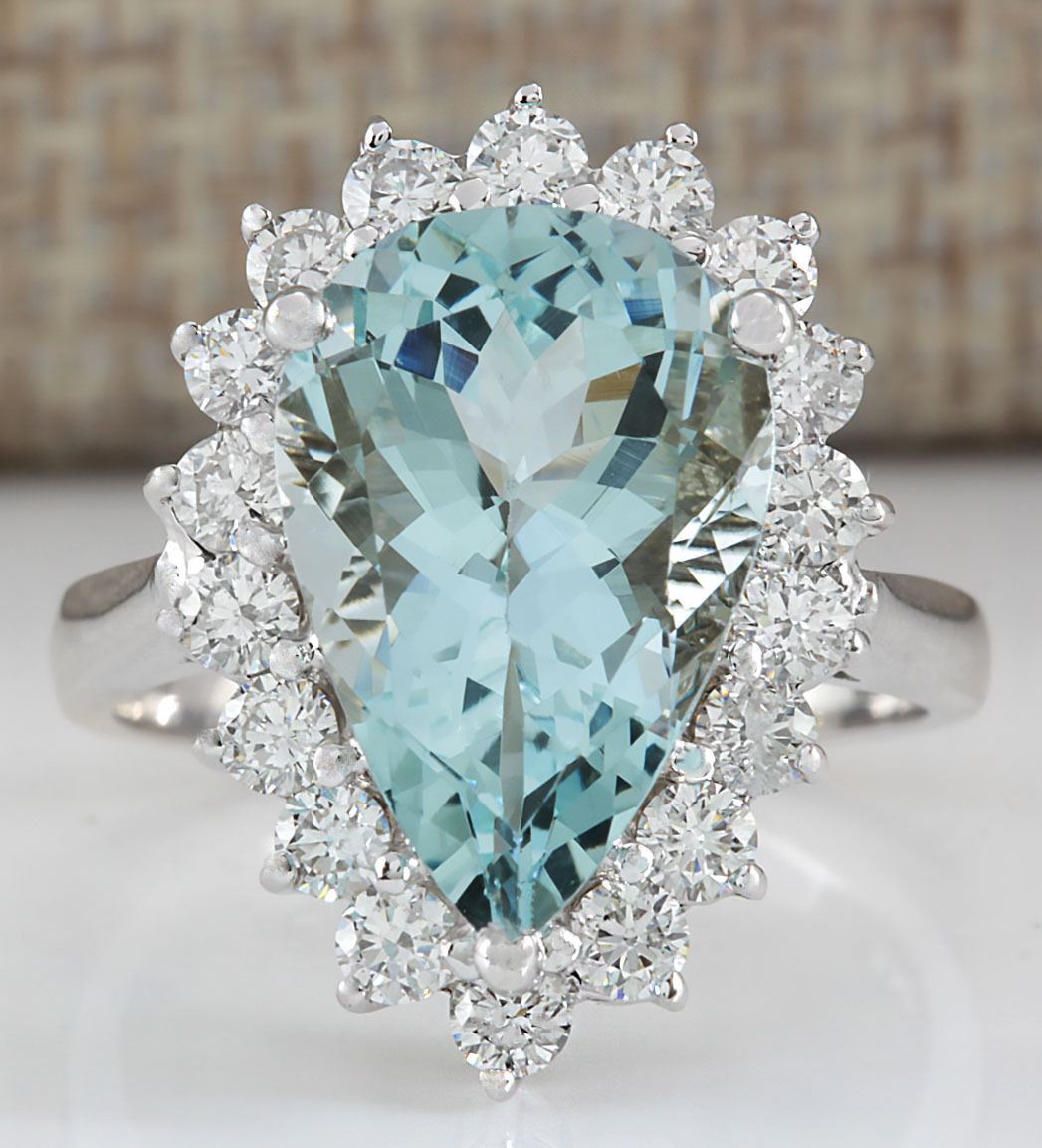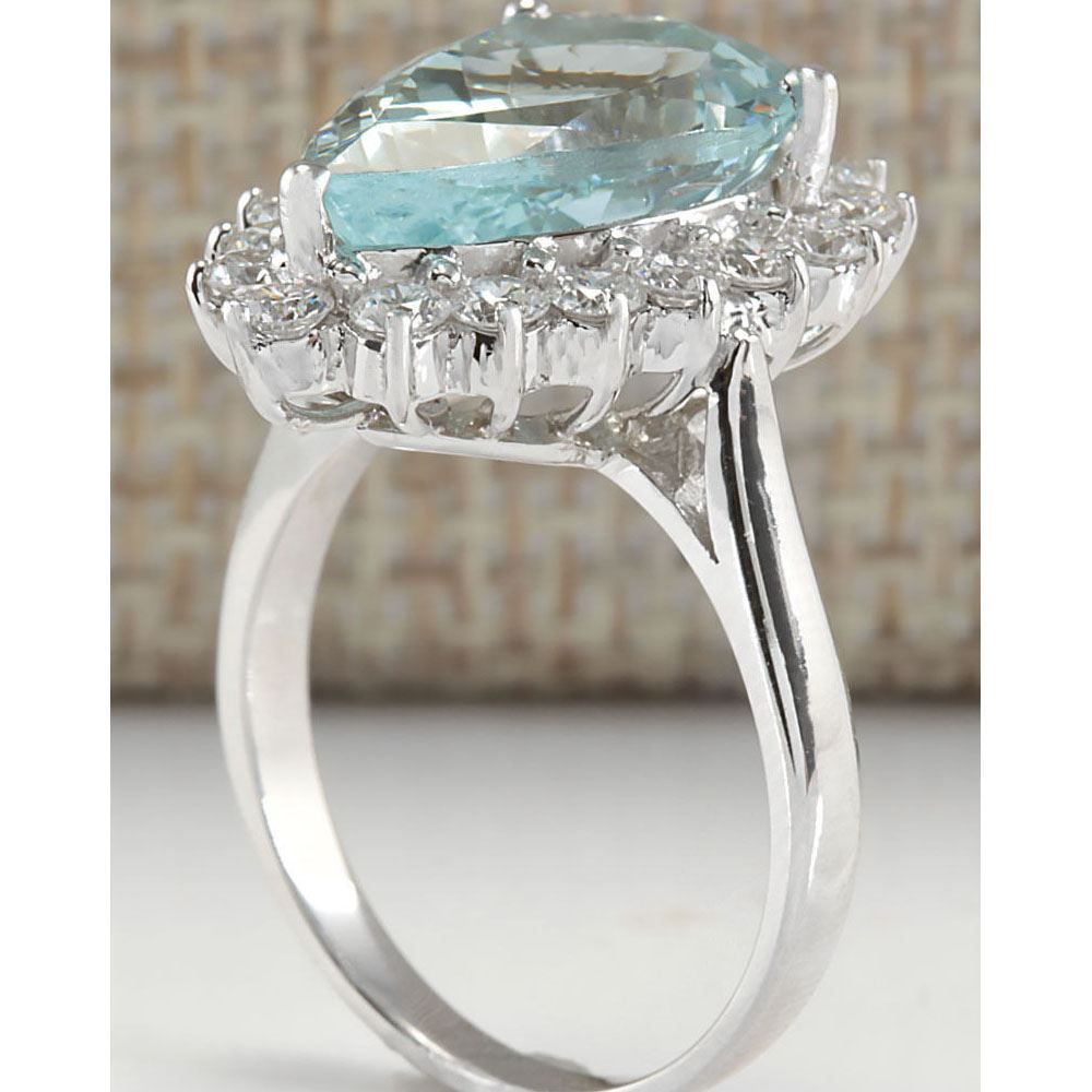 6.26 CTW Natural Aquamarine And Diamond Ring In 18K Solid White Gold