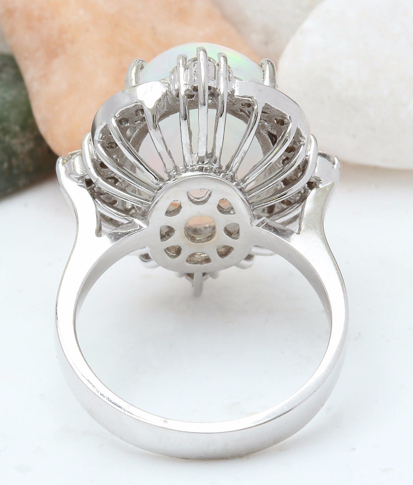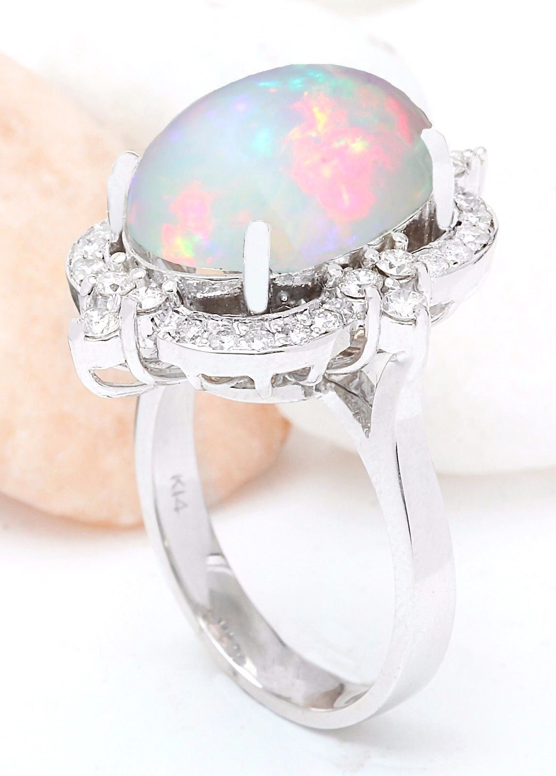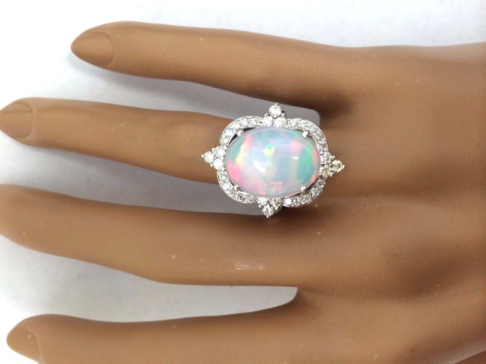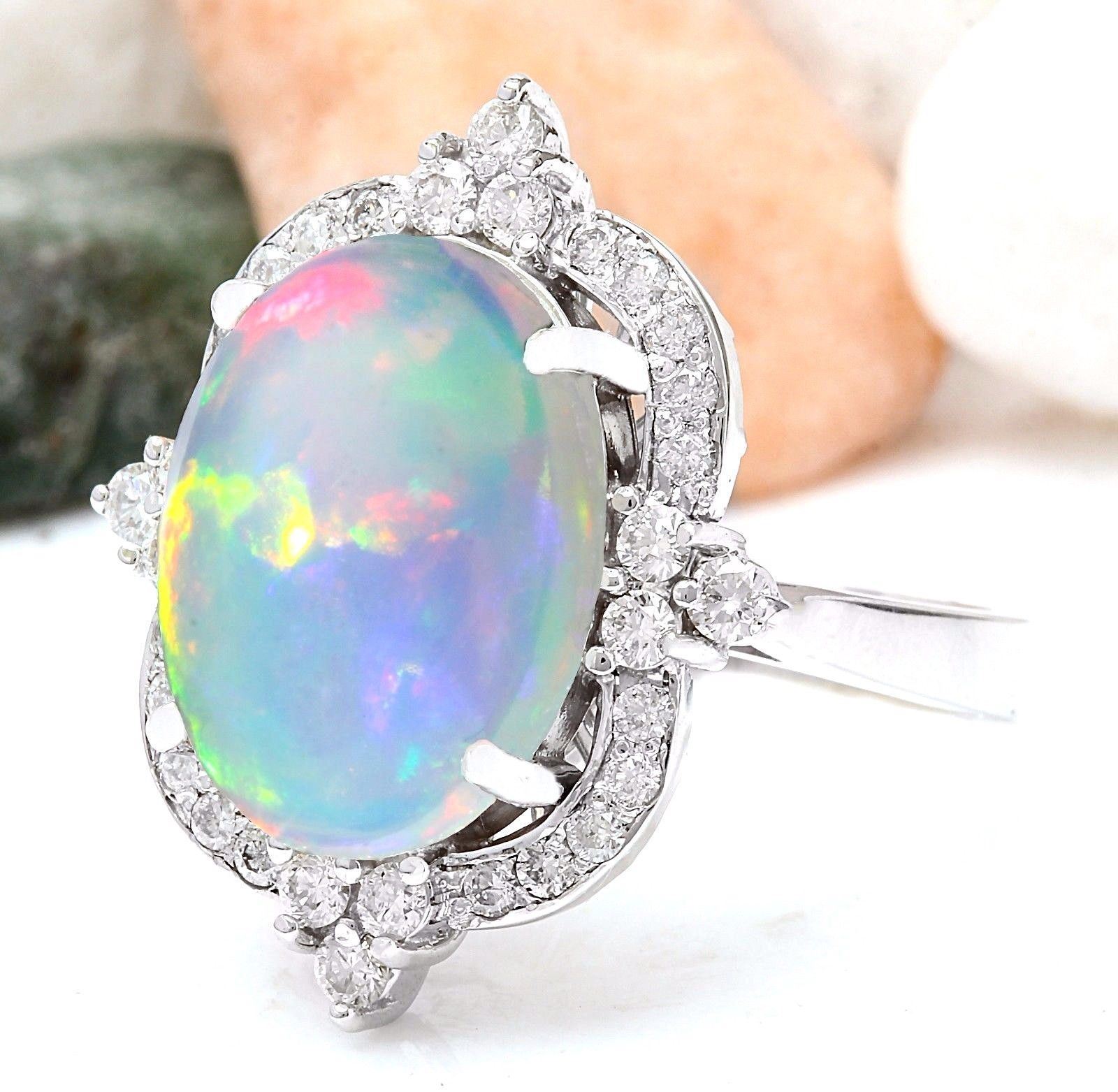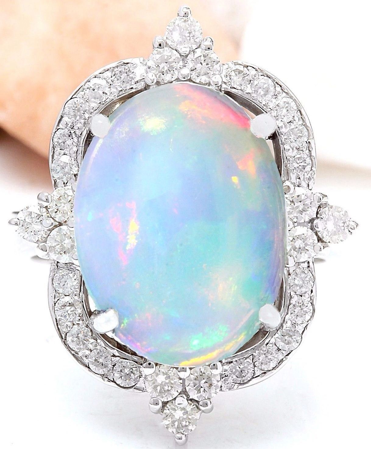 6.26 Carat Natural Opal 14K Solid White Gold Diamond Ring