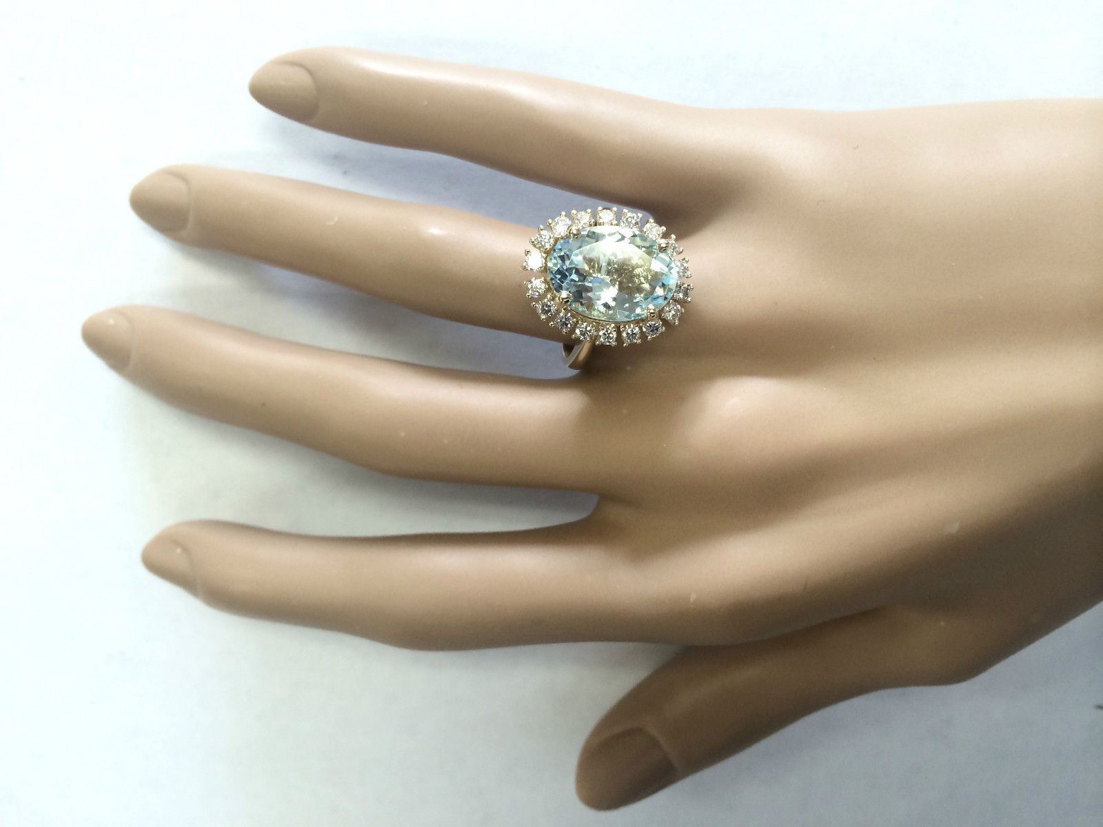 6.27 CTW Natural Aquamarine And Diamond Ring In 14k Yellow Gold
