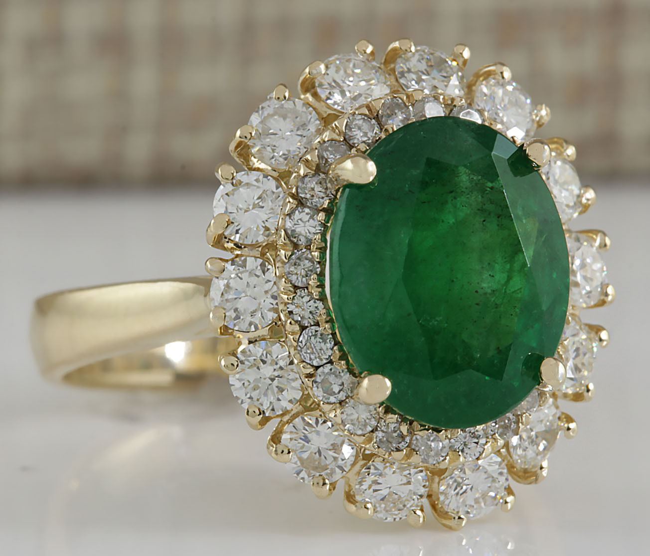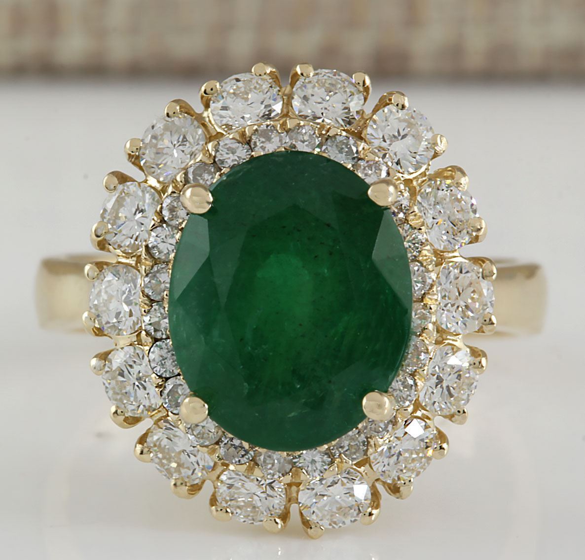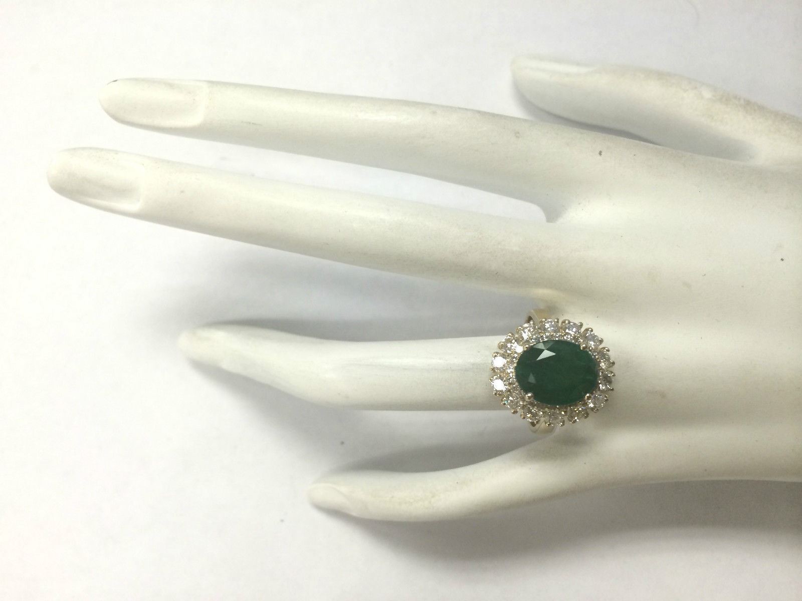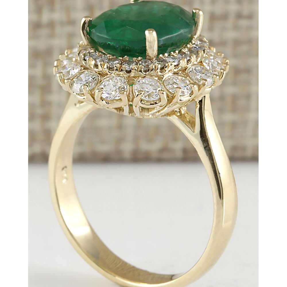 6.29 CTW Natural Emerald And Diamond Ring 14K Solid Yellow Gold