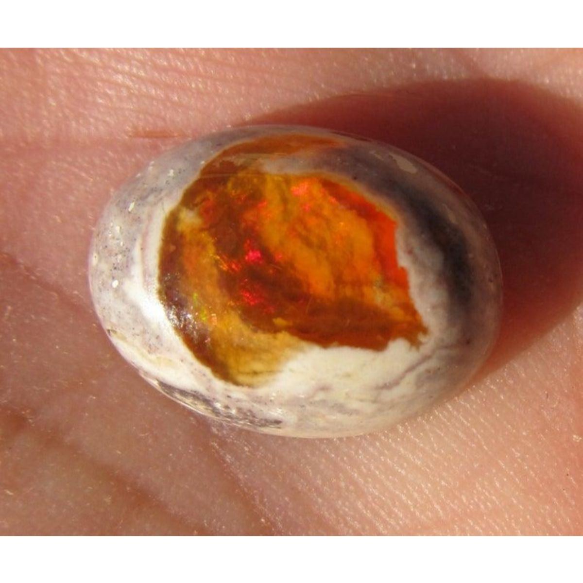 6.2ct Matrix Fire Opal from Magdalena, Mexico. Nice color flashes on rhyolite matrix, cabochon gemstone. Fantastic little "cracked egg" appearance. Perfect for mounting as a ring or pendant.  Appx. Size: 14 x 12 mm - 5 mm thick Appx. Weight: 6.2 ct Â