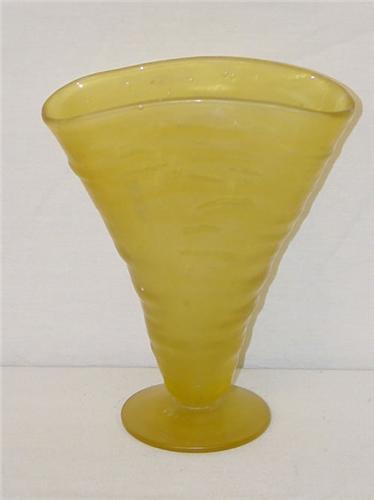 6 3/4" CONSOLIDATED YELLOW ART GLASS VASE W/ FLARE TOP, UNMARKED