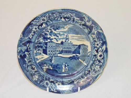 6 3/4" DARK BLUE HISTORICAL STAFFORDSHIRE PLATE- CITY HALL NEW YORK - REPAIRED;