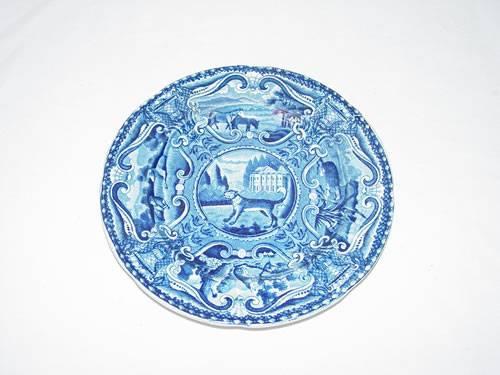 6 3/4" DARK BLUE STAFFORDSHIRE QUADRUPEDS PLATE BY HALL - MINOR SURFACE WEAR;