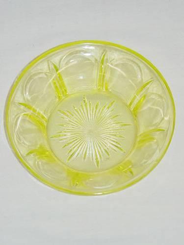 6 3/4" SANDWICH VASELINE BOWL - LOOP PATTERN, RIM NICKS and ROUGHNESS;