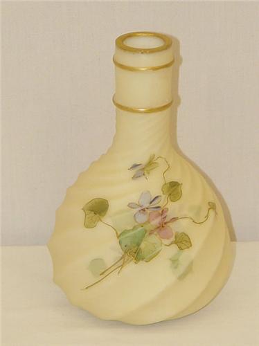 6 3/4" SMITH BROS. TWISTED VASE W/ FLORAL W/ GOLD TRIM DECORATION-MARKED ON BOTTOM - SMALL CHIP ON TOP LIP & GOLD WEAR