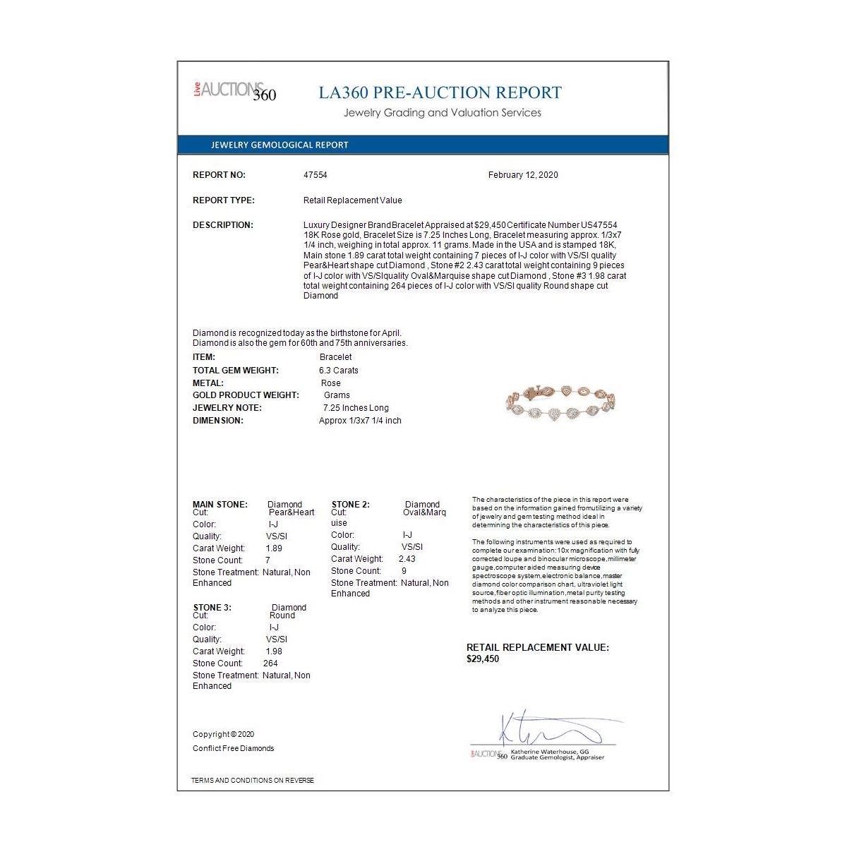 All sales are final, placing a bid is a legally binding obligation. All lots are sold as is, where is, with all the faults, imperfections, omissions and errors in the written description, estimates, appraisals, graphics and photography. USJL is not responsible for any errors or omissions in the description, graphics or photography provided or in the bidding software. Due diligence to verify the condition and description of a lot is the sole responsibility of the Bidder prior to placing any bid. Returns may only be made with the advance written authorization of USJL and are in USJL's sole discretion to approve. To request a return you must provide a written request fully explaining the basis for the return no later than 4 days after your receipt of the lot. Under no circumstances will any amounts other than the winning bid amount be refunded. A restocking charge of 19% of the full invoice amount may apply in USJL 's sole discretion. Any allowed returns must be received in exactly the same condition as when originally shipped to Buyer, or they will be returned to buyer at Buyer's cost. Any unauthorized returns will be refused. DELIVERY REFUSAL OF ITEMS SHIPPED BY US JEWELRY LIQUIDATION TO THE BIDDER CONSTITUTES AN UNAUTHORIZED RETURN IN DIRECT VIOLATION OF THESE GENERAL TERMS AND CONDITIONS.