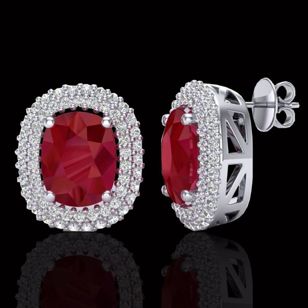 REF-160R9K - SKU: 20124 ---- 6.30 ctw Ruby & Micro Pave VS/SI Diamond Earrings 18k White Gold
