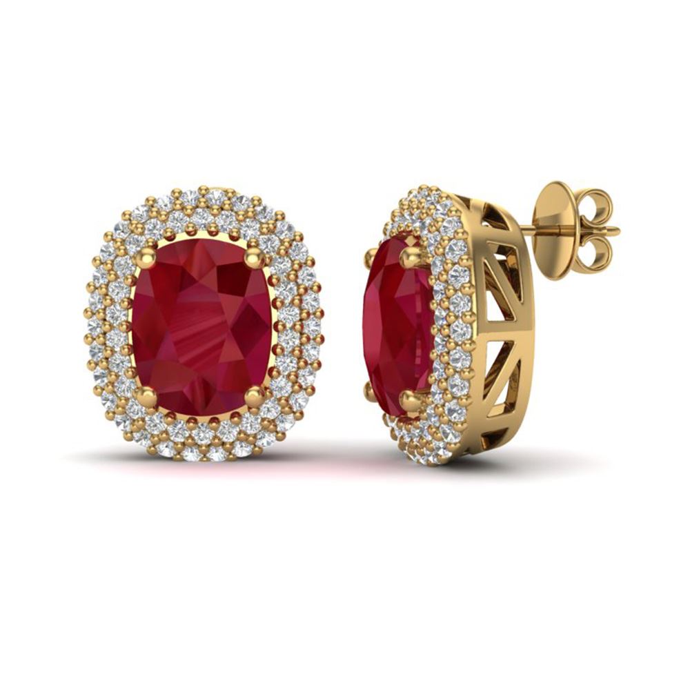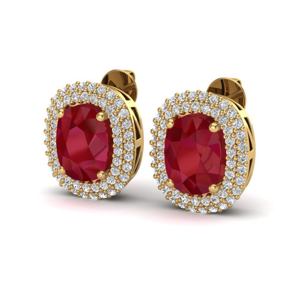 SKU: 20125 ---- 6.30 ctw Ruby & Micro Pave VS/SI Diamond Earrings 18k Yellow Gold
