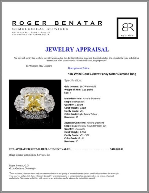 Regarding Appraised Jewelry and Loose Stones - Auctionfarm sends them out to a third party for Retail Replacement Value Appraisals, which are the most common. These types of evaluations are written for insurance needs. This would be the cost to replace the jewelry with an item of equal quality and kind, considered to be the current market price or the replacement value. This type of appraisal is done to protect you in the event of damage or loss of a valuable item. Our appraisals are conducted by independent 3rd Party appraisal firms that utilizes Certified GIA Gemologist. Appraisals should be used for verification of gemstone and/or metal weight, size, and grade only, not actual value. Appraisal value should be considered for insurance purposes only, not actual value, as price varies greatly from retail locations thru out the world. Items should not be purchased with the expectation to resell for appraisal price, or for profit.