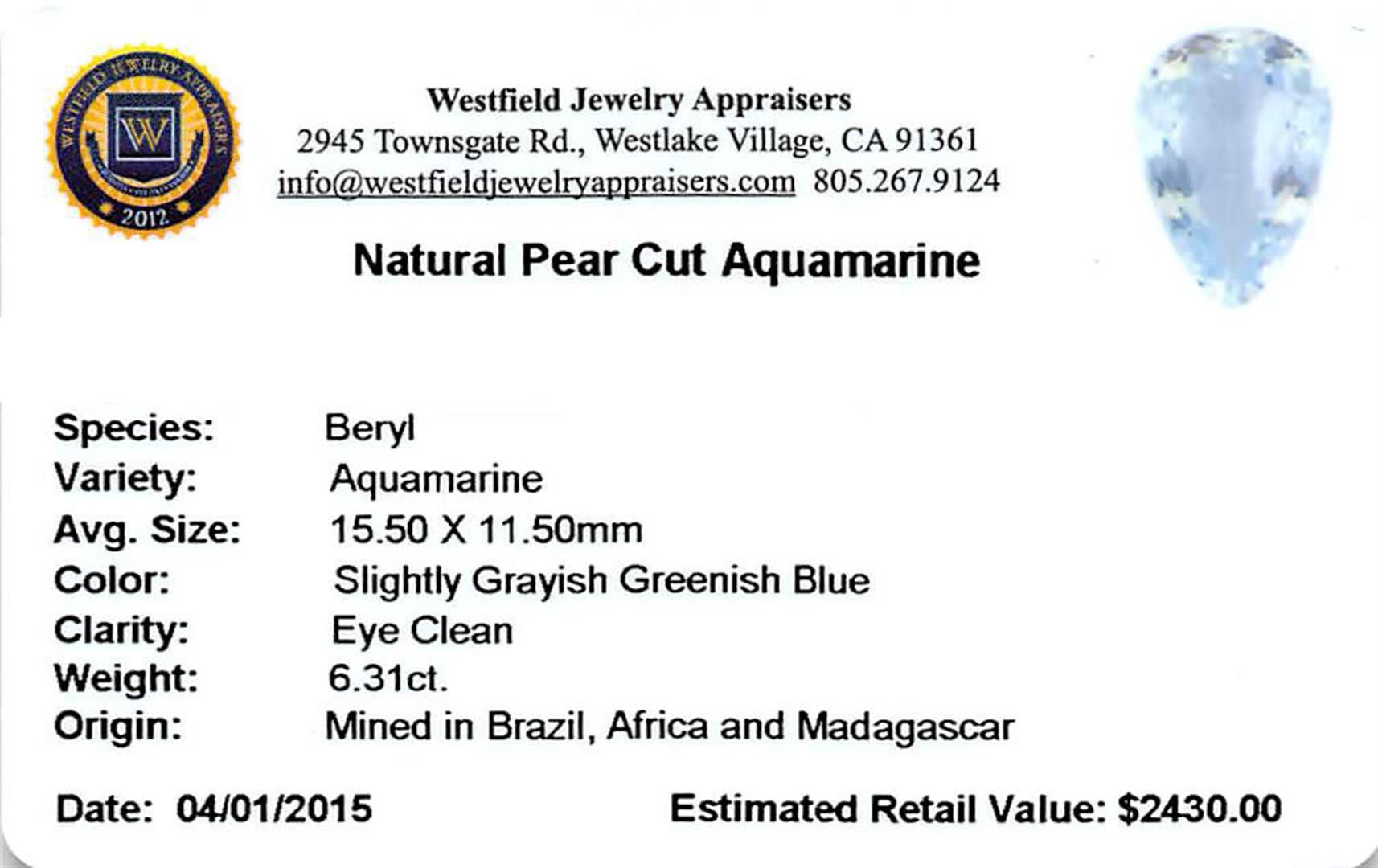 One 6.31ct Pear Aquamarine Parcel.