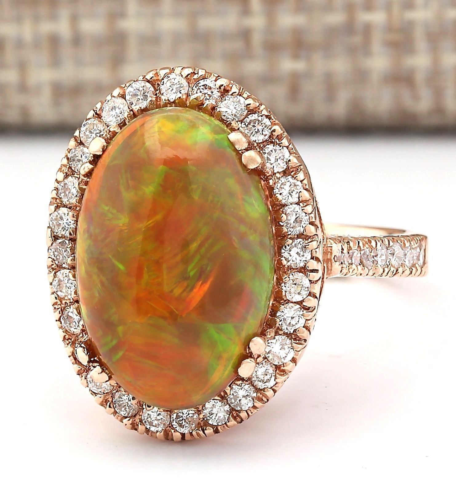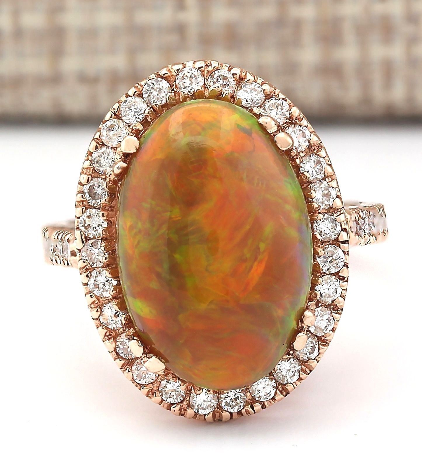 6.32 CTW Natural Opal And Diamond Ring In 18K Rose Gold