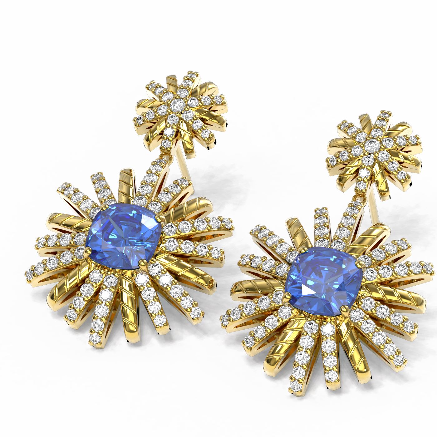 REF-274F5M - SKU: 52014 ---- 6.33 ctw Tanzanite & Diamond Earrings 18K Yellow Gold