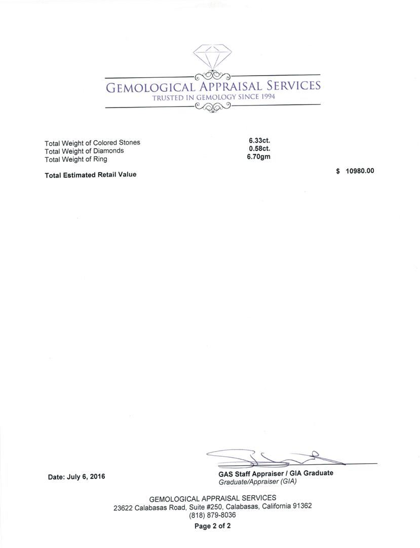 Not all Jewelry, watches or loose stones are appraised and the appraisals are provided for bidders only in certain instances at the discretion of SAA. Our appraisals are conducted by independent third-party appraisal firms. Such firms may be certified GIA Gemologists or have education in the industry or alternative certifications. Appraisals should be used for verification of gemstone and/or metal weight, size, and grade only, not actual value for resale or insurance purposes. Appraisal value should be not considered for actual value, as price varies greatly from retail locations and other merchants in different geographic locations. All Items auctioned by SAA should not be purchased with a view or expectation toward resale for appraisal price given, or to make a profit. The ultimate value for which an item can be resold may vary drastically from the appraisals listed by SAA.