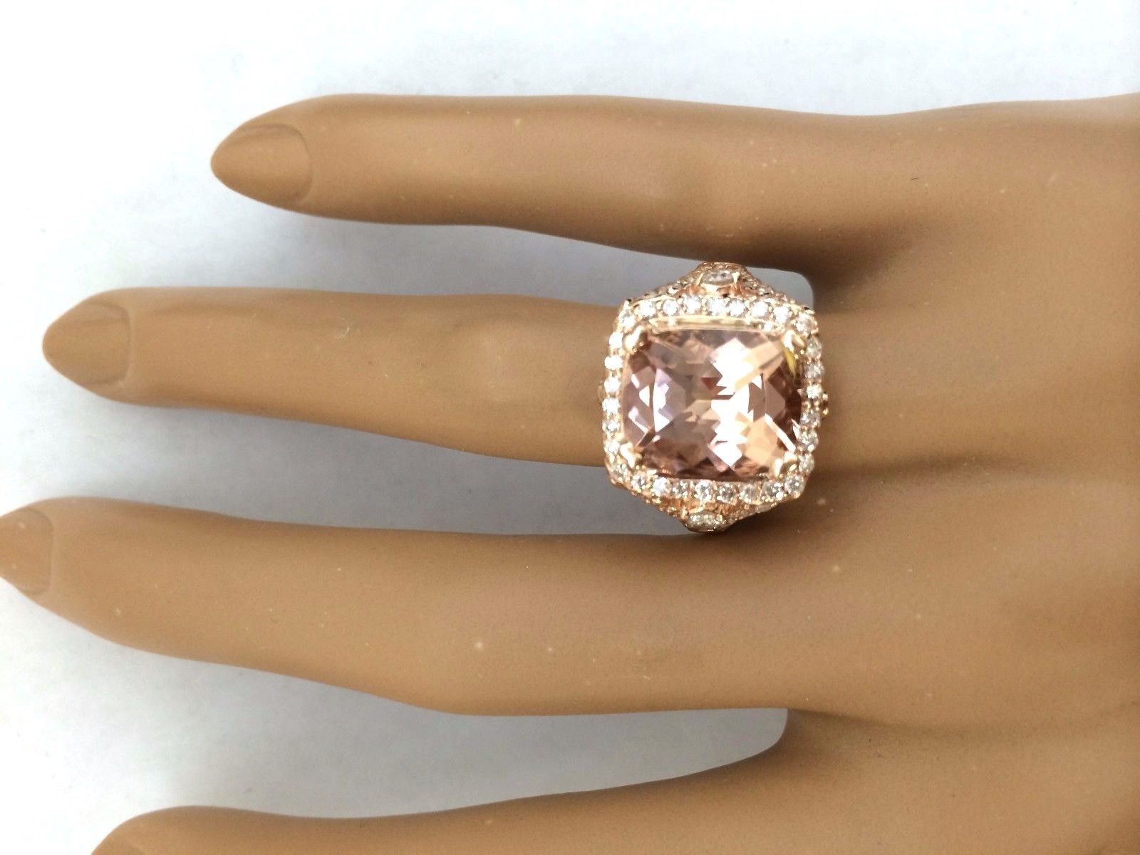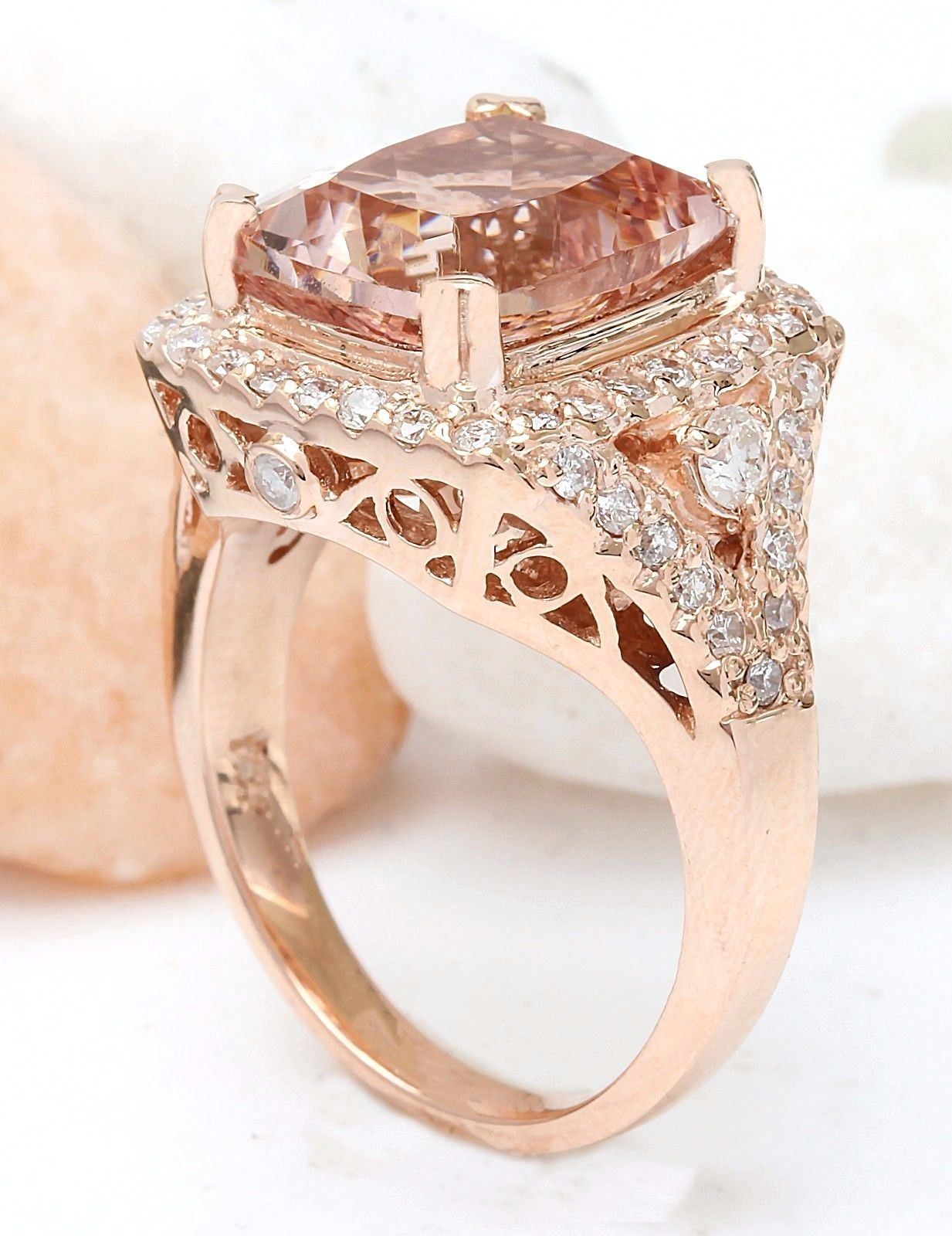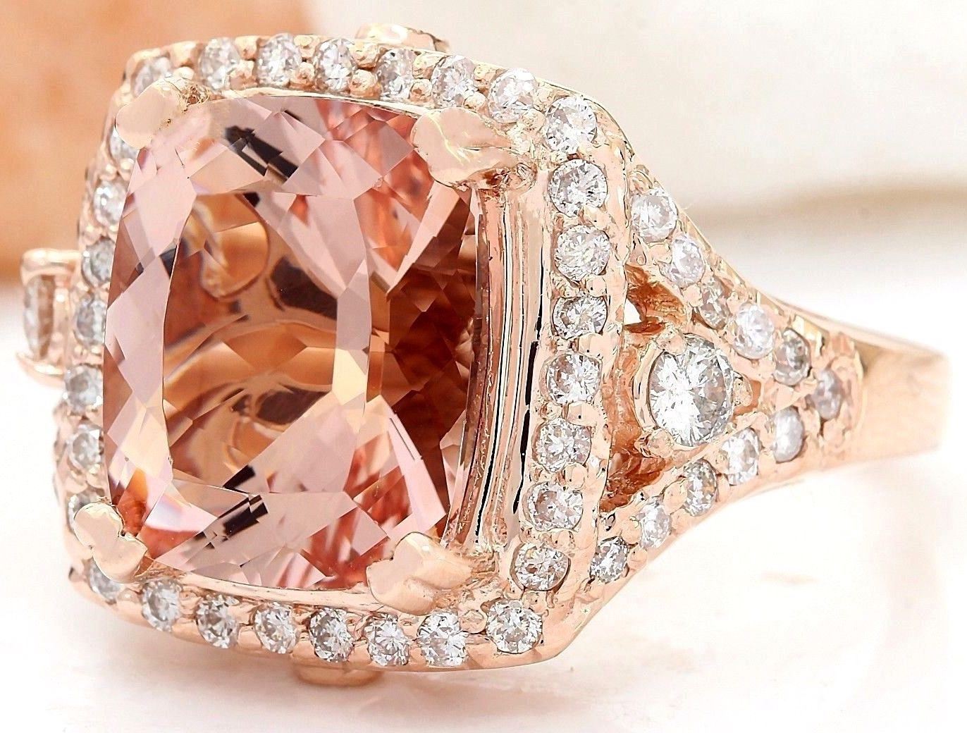 6.34 Carat Natural Morganite 14K Solid Rose Gold Diamond Ring