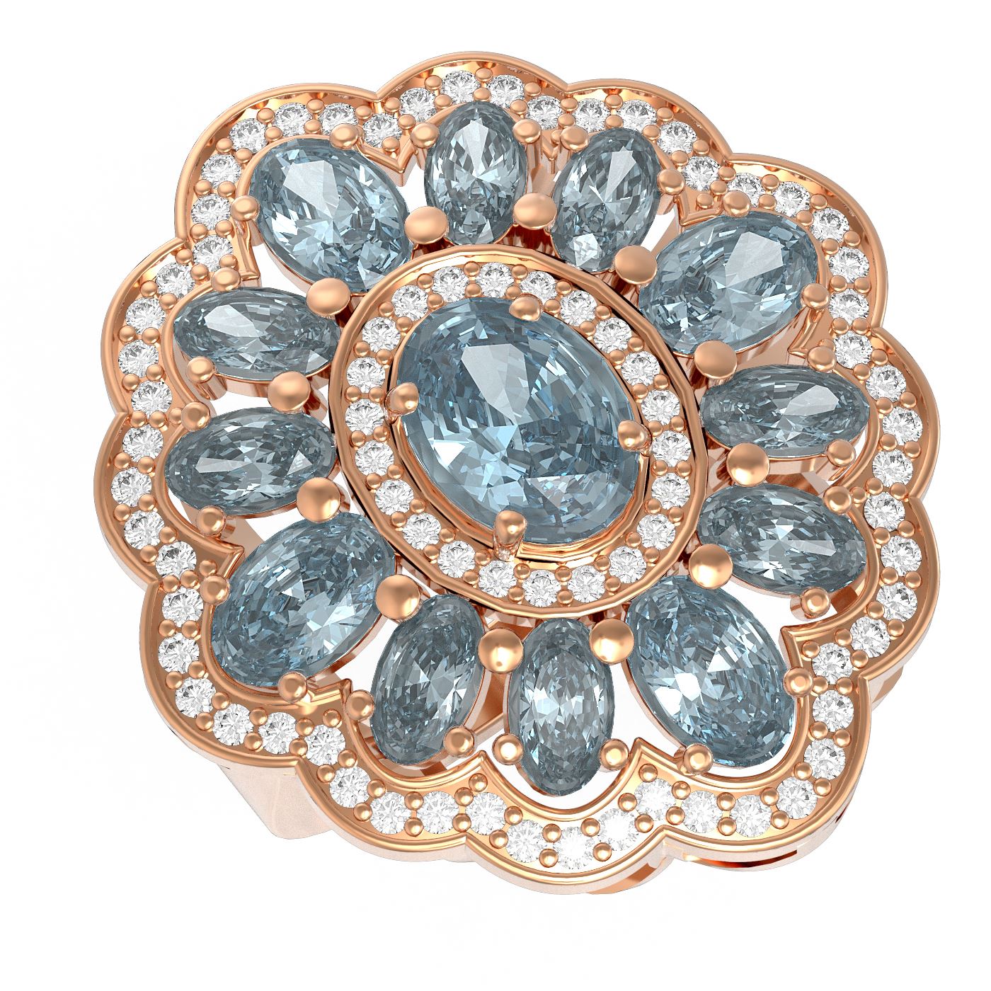 REF-140H2R - SKU: 54624 ---- 6.34 ctw Blue Topaz & Diamond Ring 18K Rose Gold