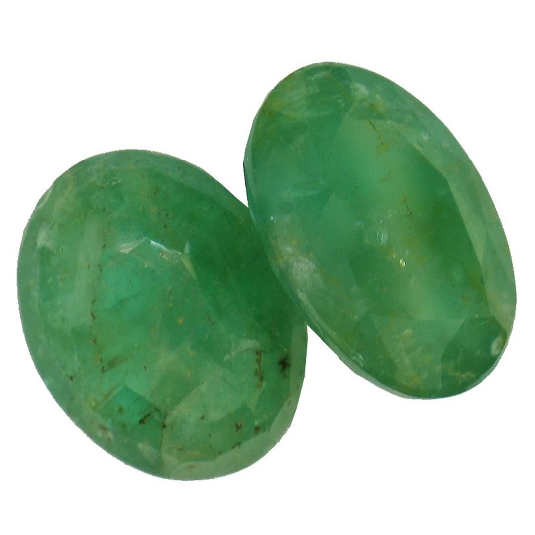 Two oval mixed cut natural emeralds, measuring 11.10 x 9.00 x 4.25mm, exact total weight 6.34ct., clarity is heavily included, medium dark, very slightly grayish, very slightly bluish green color, (GIA vslbG 6/3), cut is good. Transmitting light somewhat diffusely, translucent, Naturally occurring internal & external characteristics are present, Indications of multiple laboratory enhancements, including high temperature heat treatment. Westfield Appraised at $2,905.00.