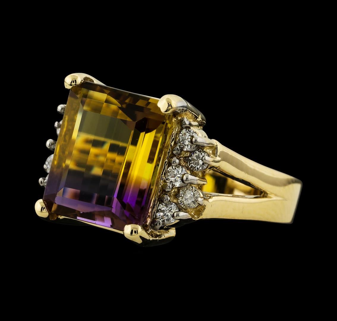 One ring : 14KT yellow gold weighing 6.80gm containing ametrine with a total weight of 6.38ct and diamonds weighing 0.33ctw.