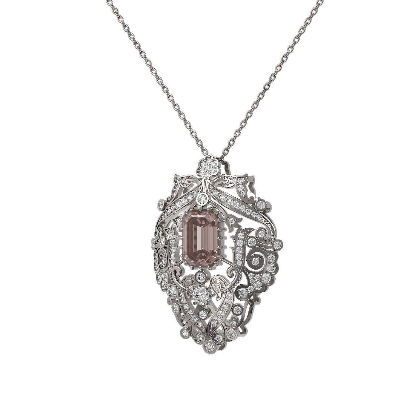 REF-425H5R - SKU: 53512 ---- 6.38 ctw Morganite & Diamond Necklace 18K White Gold