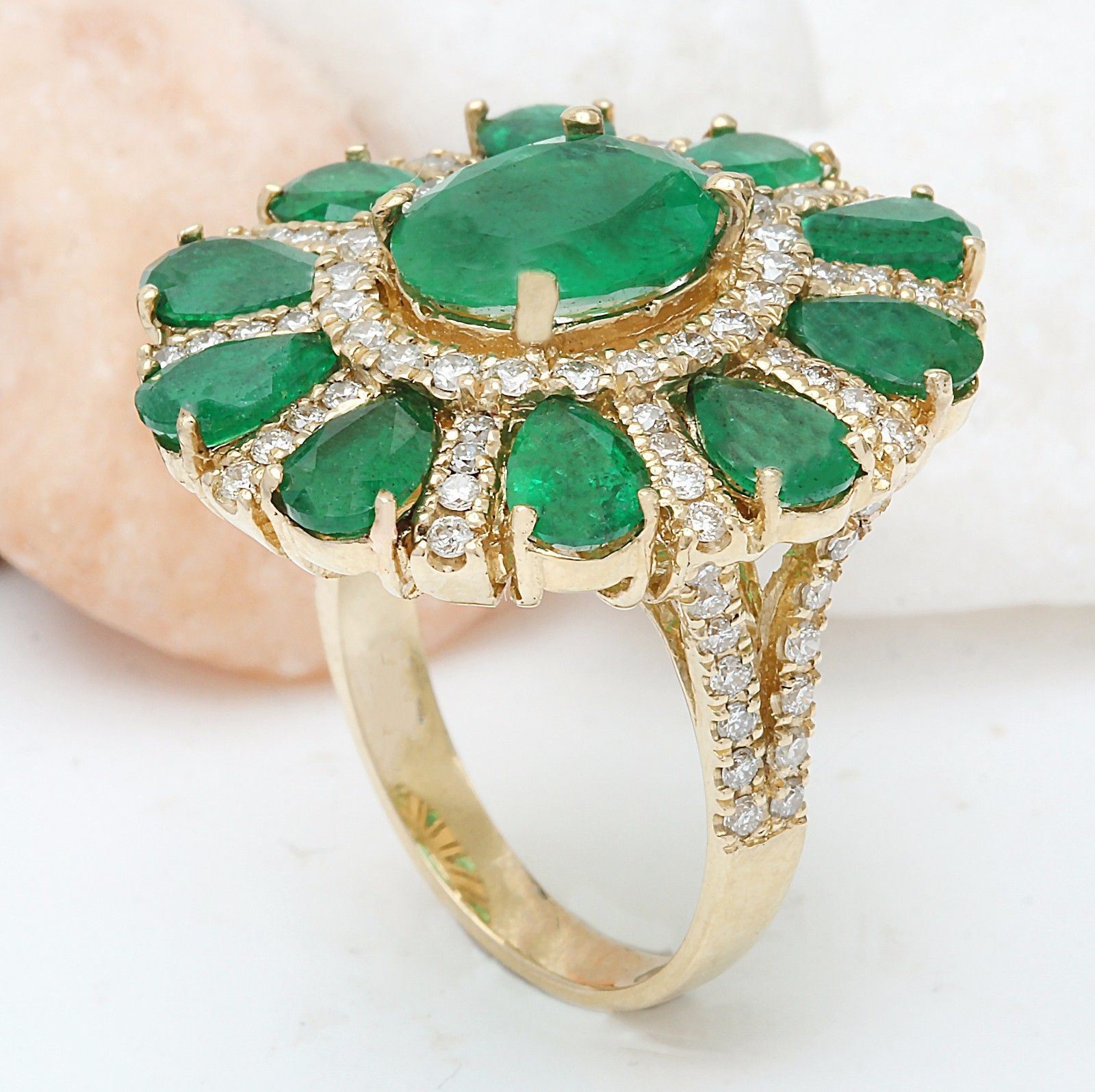 6.39 Carat Natural Emerald 18K Solid Yellow Gold Diamond Ring