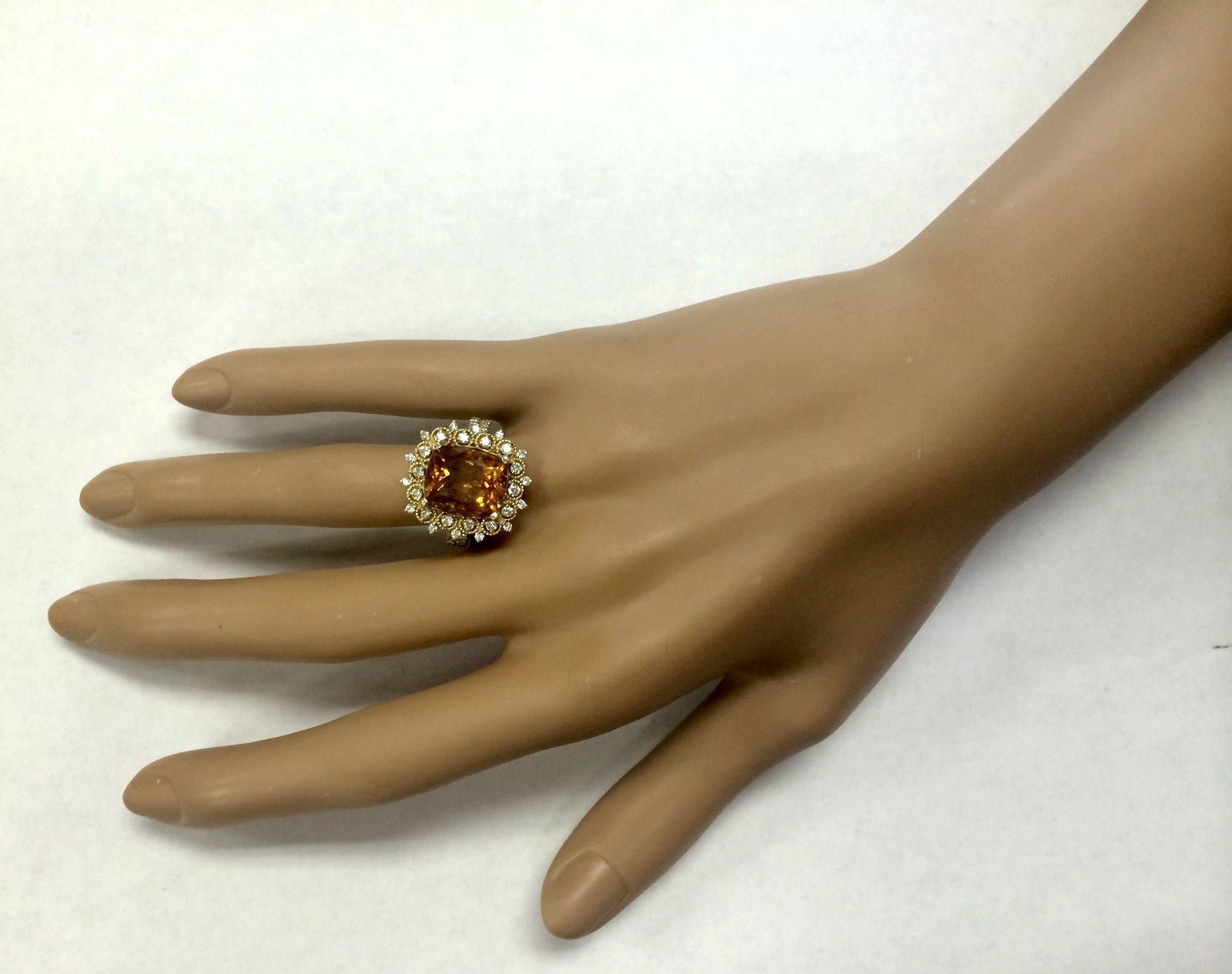 6.39 CTW Natural Madeira Citrine And Diamond Ring 14k Solid Yellow Gold