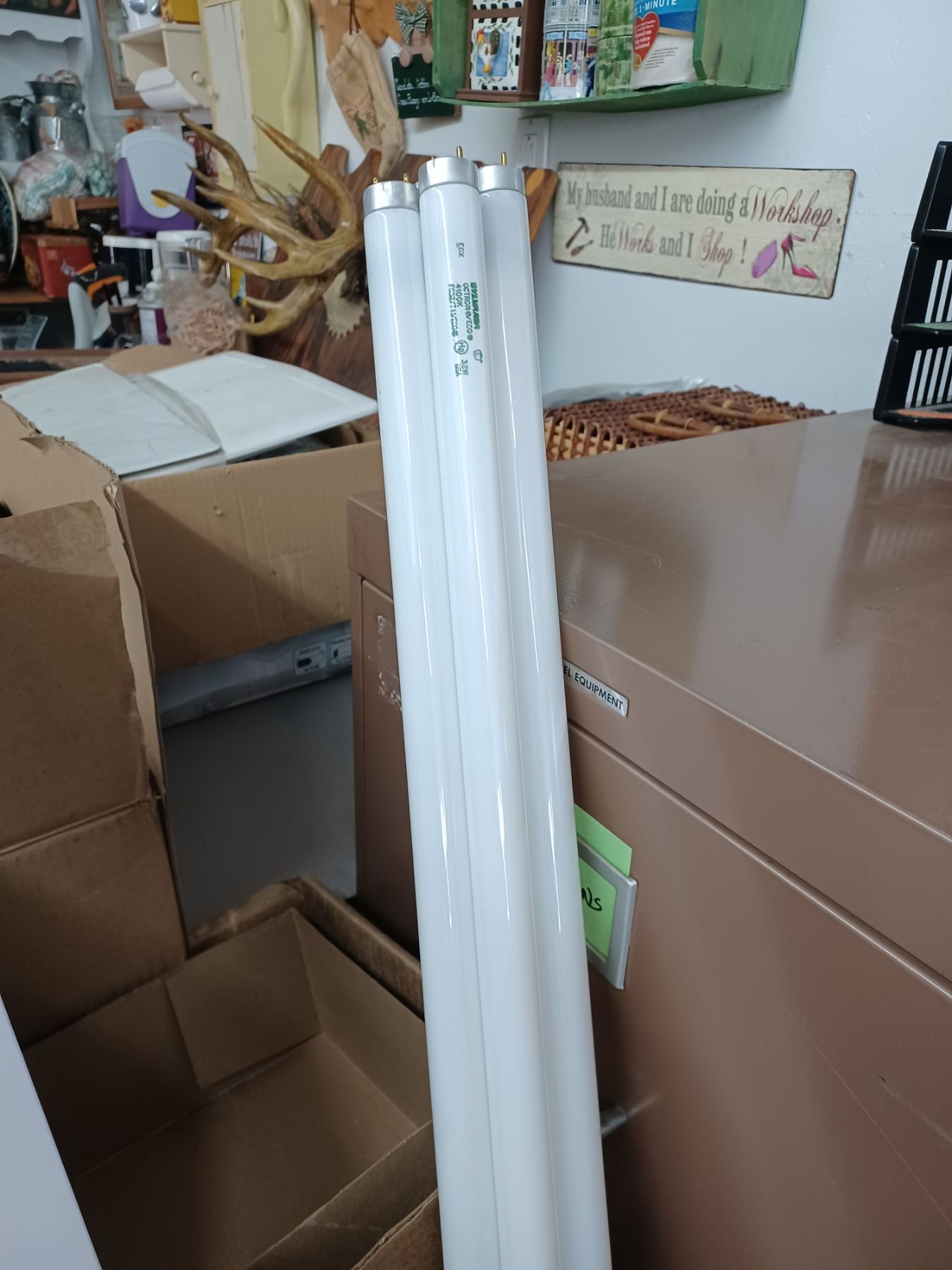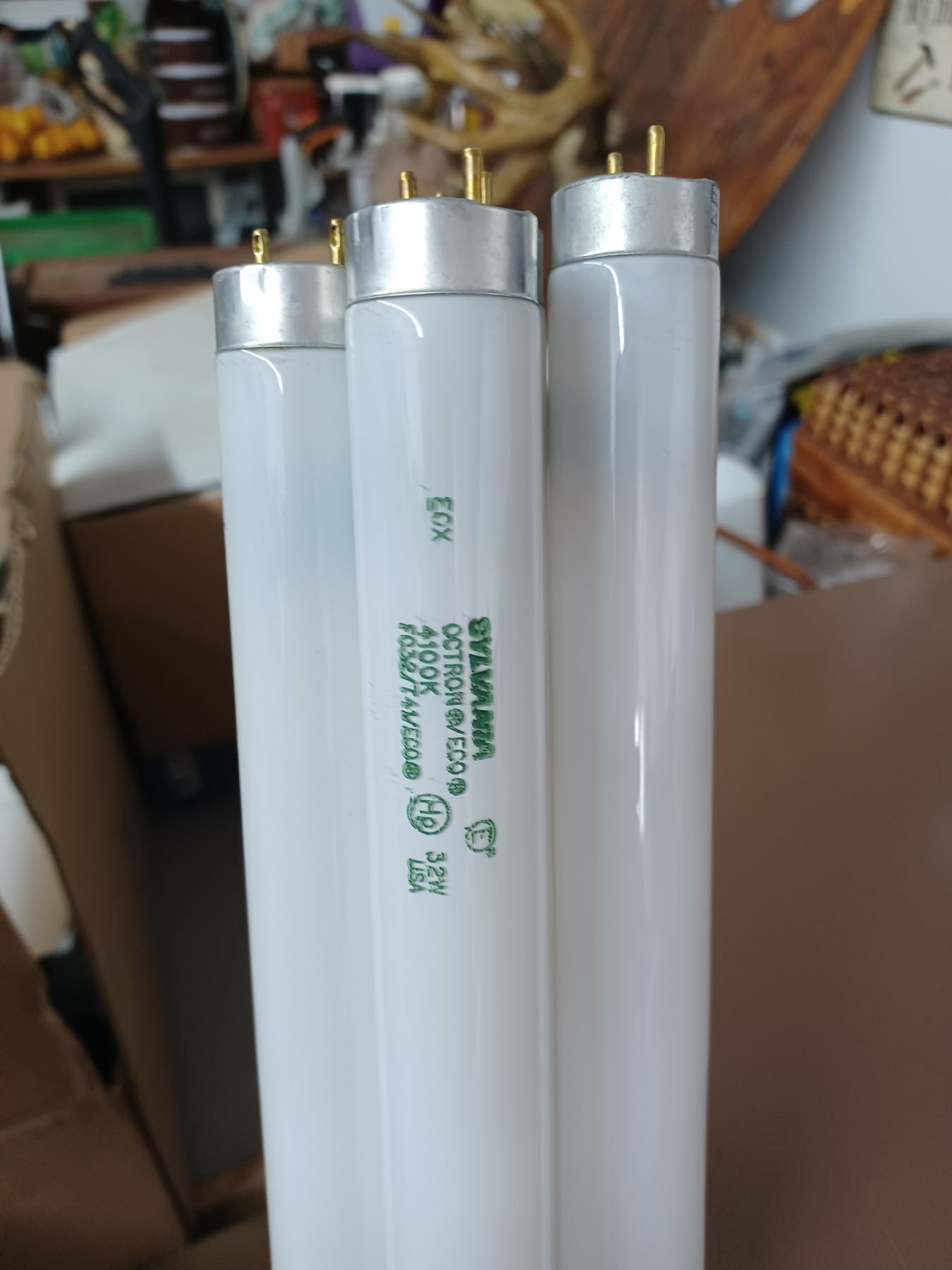 6 - 4 BULB SHOP FIXTURES VERY CLEAN COMES WITH BULBS