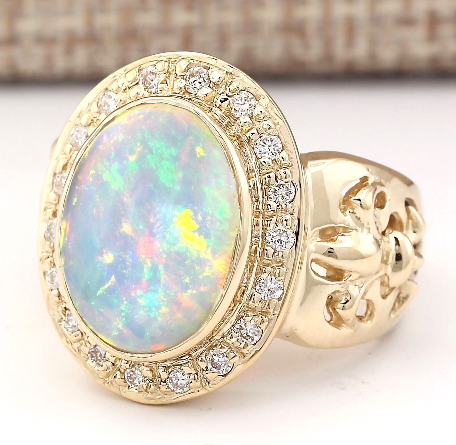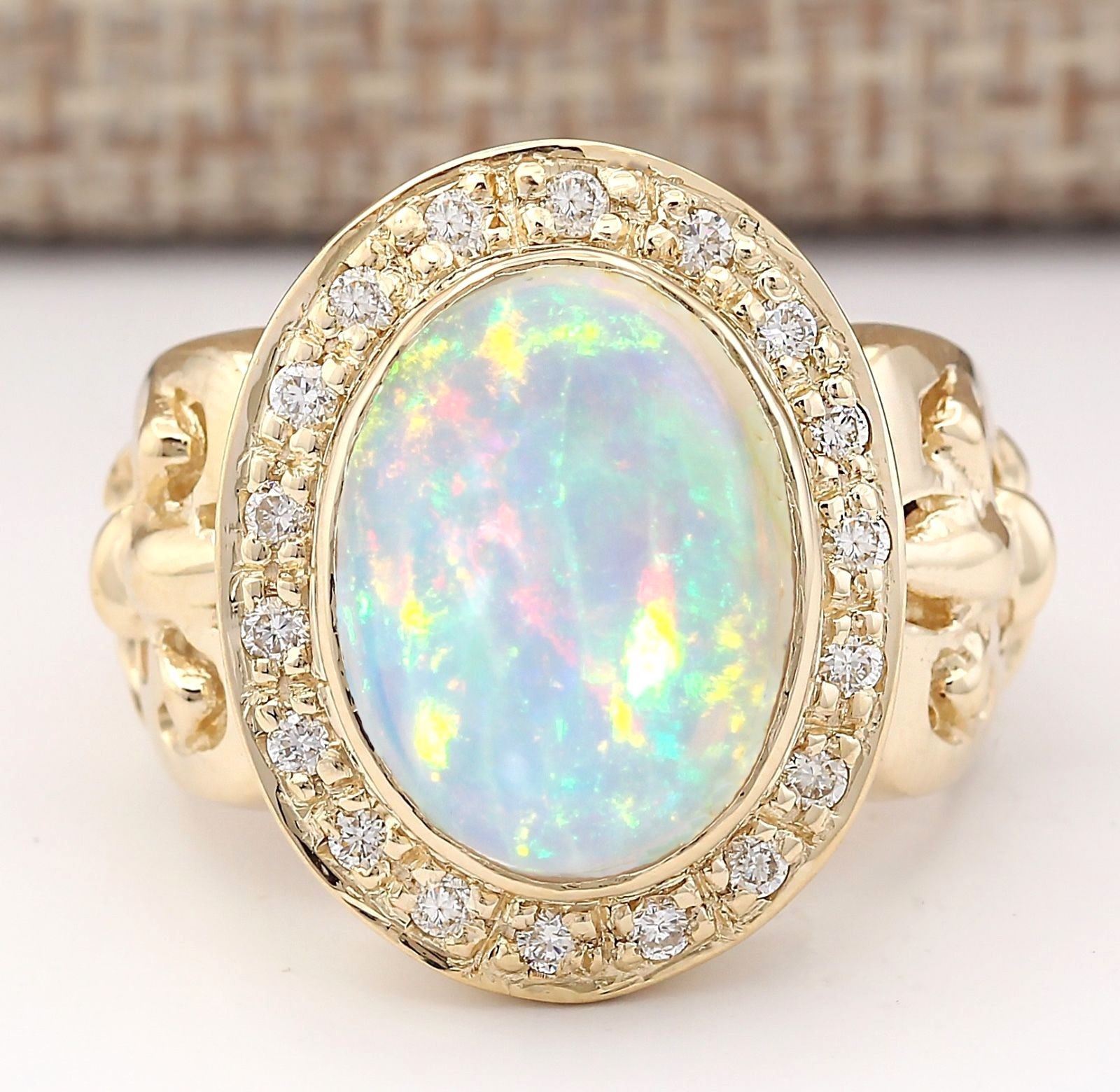 6.40 CTW Natural Opal And Diamond Ring In 14k Yellow Gold